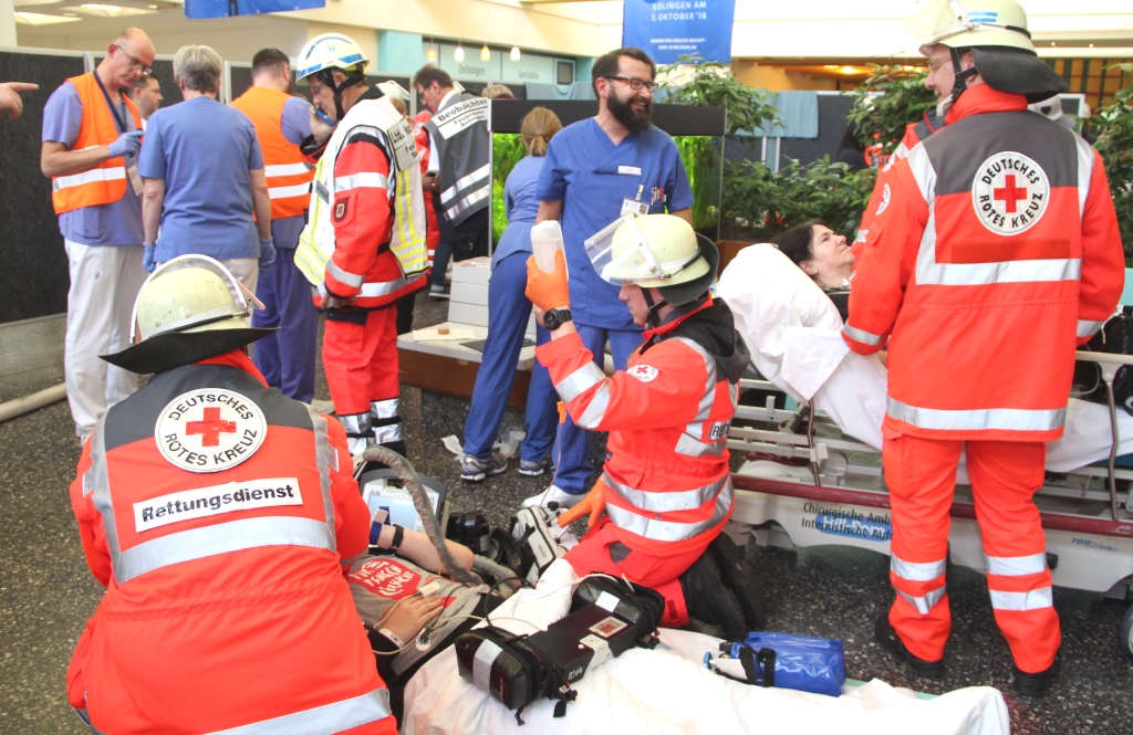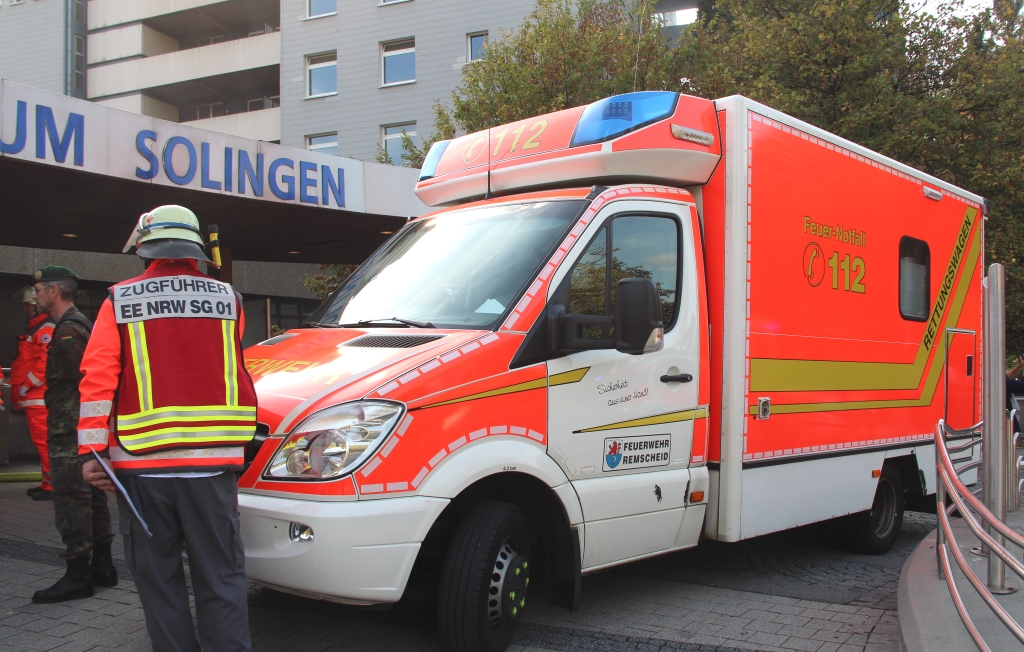 Über 500 Personen waren an der Übung beteiligt, daran allein 430 aus den Reihen der Rettungskräfte. Weitere 80 Fachkräfte waren am Samstag seitens des Klinikums mit dem Übungszenario betraut. „Bei dem simulierten Brand im Krankenhaus mit Menschenrettung wurde eindrucksvoll unter Beweis gestellt, wie funktionsfähig alle beteiligten Organisationen und Institutionen in Solingen sind. Es hat wunderbar funktioniert, wie die verschiedenen Einheiten wie Rädchen ineinander gegriffen haben. Und das ist nicht selbstverständlich, denn ein Klinikum ist ganz anders organisiert als eine Feuerwehr“, lobte Oberbürgermeister Tim Kurzbach, der die Übung von Beginn an begleitete.