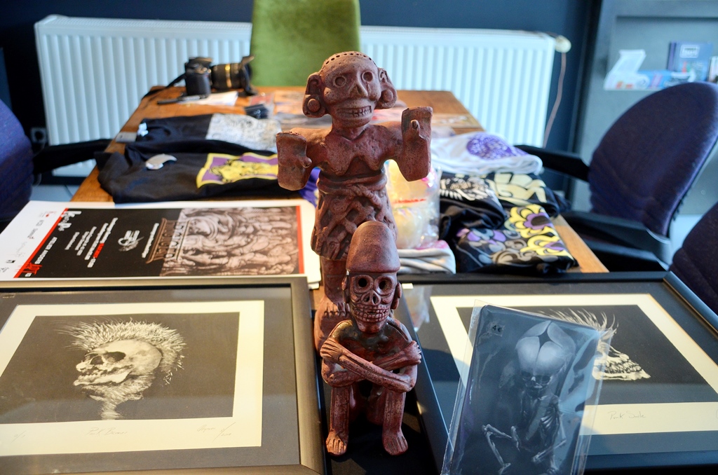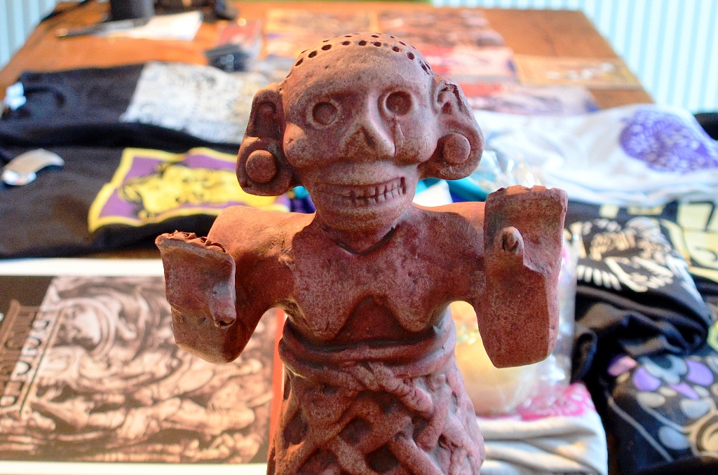 „Auf dem Altar sind viele traditionelle Sachen“, erklärt Ioana Kirculescu. „Sie werden seit Hunderten von Jahren in Handarbeit hergestellt. Auch Süßigkeiten werden den Toten auf dem Altar dargebracht.“ Kirculescu ist zusammen mit César Israel Ramírez Oropeza, dem Kurator des Giger-Museums zur Vernissage nach Deutschland gekommen.