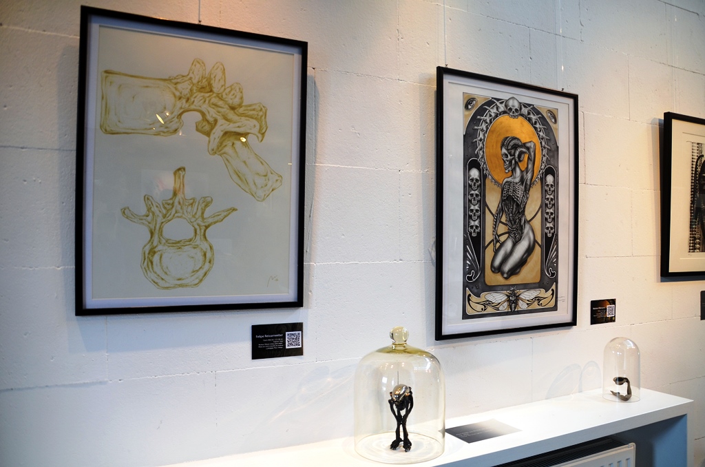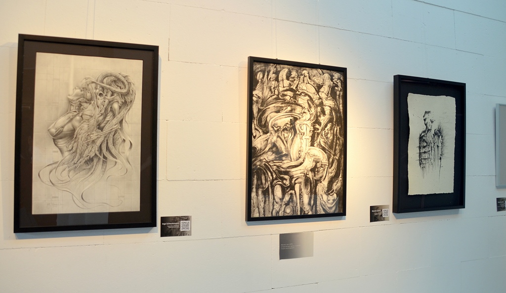 Auch der 2014 verstorbene Giger verband die Extreme. Schon in jungen Jahren ließ er von sich eine Totenmaske anfertigen. Sie ist ein Teil der Ausstellung, die wegen der Menge der gezeigten Kunstwerke auf zwei Ateliers aufgeteilt werden musste.