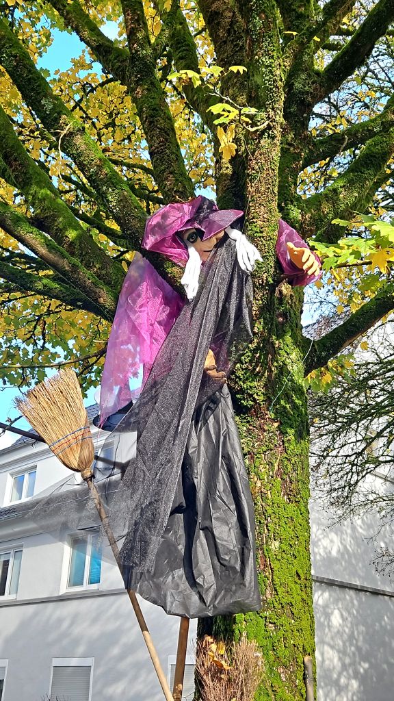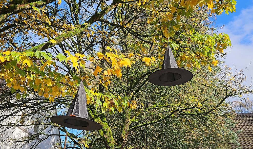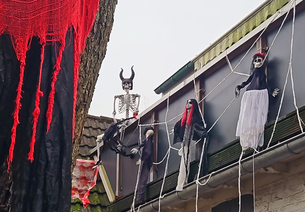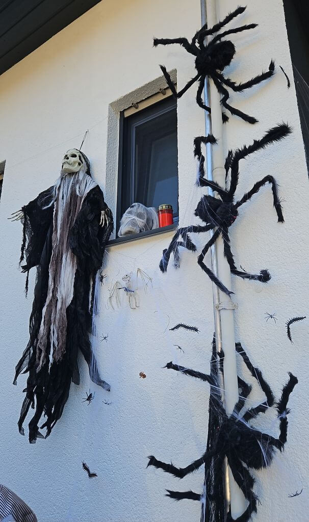 In Höhscheid dominiert das Thema Hexen. Ein großer Baum ist mit flugbereiten Besen geschmückt, umgeben von Hexenhüten, die sich in den Ästen verfangen haben – eine humorvolle Anspielung auf missglückte Landungen. Riesige Spinnen und Netze umhüllen die Fassade, und wackelige Grabsteine im Vorgarten deuten darauf hin, dass hier einst ein Friedhof gewesen sein könnte. Das Haus ist ein wahres Gruselkunstwerk und lädt zum Staunen ein.