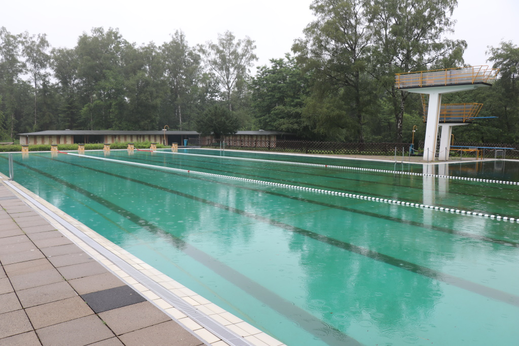 SOLINGEN (red) – Der mitunter sehr heftige Dauerregen hat in Ohligs nicht nur für viele übergelaufene Keller gesorgt, sondern auch für Probleme im Heidebad: Die Becken des Freibads wurden vom Wasser eines benachbarten Teiches überflutet und verschmutzt. Zudem ist Regenwasser in einen Keller eingedrungen, in dem die Technik für die Wasseraufbereitung steht. Eine neue Hebepumpe, die Abwasser vom Freibad zur Kanalisation in Richtung Hermann-Löns-Weg pumpen soll, ist ausgefallen, so dass der Technikraum zurzeit etwa einen Meter unter Wasser steht. Warum die Pumpe ausgefallen ist, ist zurzeit noch nicht geklärt.
