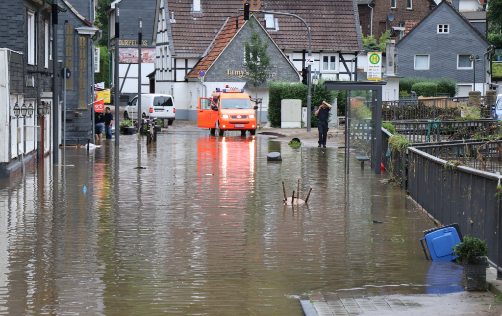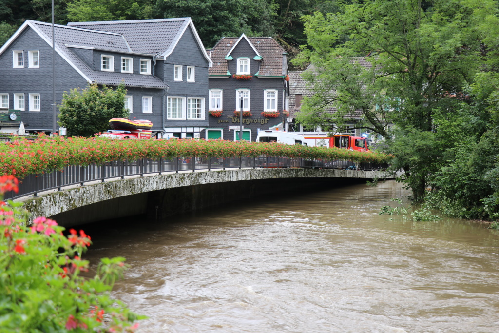 „Die Einsatzkräfte haben vergangene Nacht 130 Personen im Stadtgebiet Solingen aus akuter Not gerettet“, berichtete heute Solingens Feuerwehr-Chef Dr. Ottmar Müller. Eine Person kam gestern ums Leben (wir berichteten). Auch für die Einsatzkräfte selbst gab es mitunter Situationen, die gefährlich wurden. „Wir hatten zwei sehr kritische Situationen, als sich Einsatzkräfte auf Tanklöschfahrzeugen in Sicherheit bringen mussten und nicht mehr aus der Einsatzstelle herauskamen“, so Müller weiter.