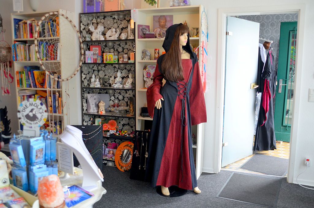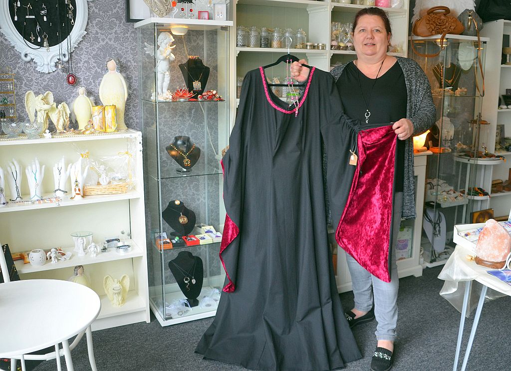 Ganz neu im Programm sind Mittelalterkleidung und selbst genähte Elbenkleider. Dazu fertigt Schumacher den entsprechenden Kopfschmuck an, jedes Stück ein Unikat. Alle Kleidungsstücke sind aus reiner Baumwolle. Wer sich in die Geheimnisse des Pendelns vertiefen möchte, ist hier ebenfalls an der richtigen Adresse. Zusätzlich sind Meditationskurse in der Planung. Das Sortiment wird ständig erweitert. Munter sagt die kreative Frau: „Ach, ich habe noch so viele Ideen.“ Und dabei strahlt sie ungeheure Energie aus.