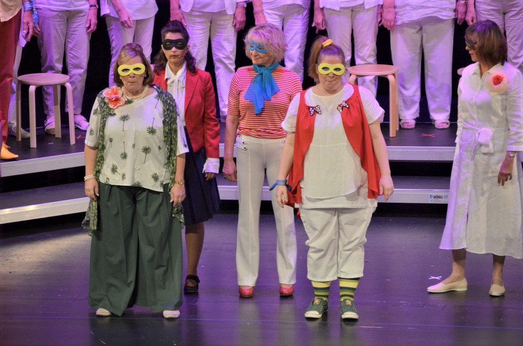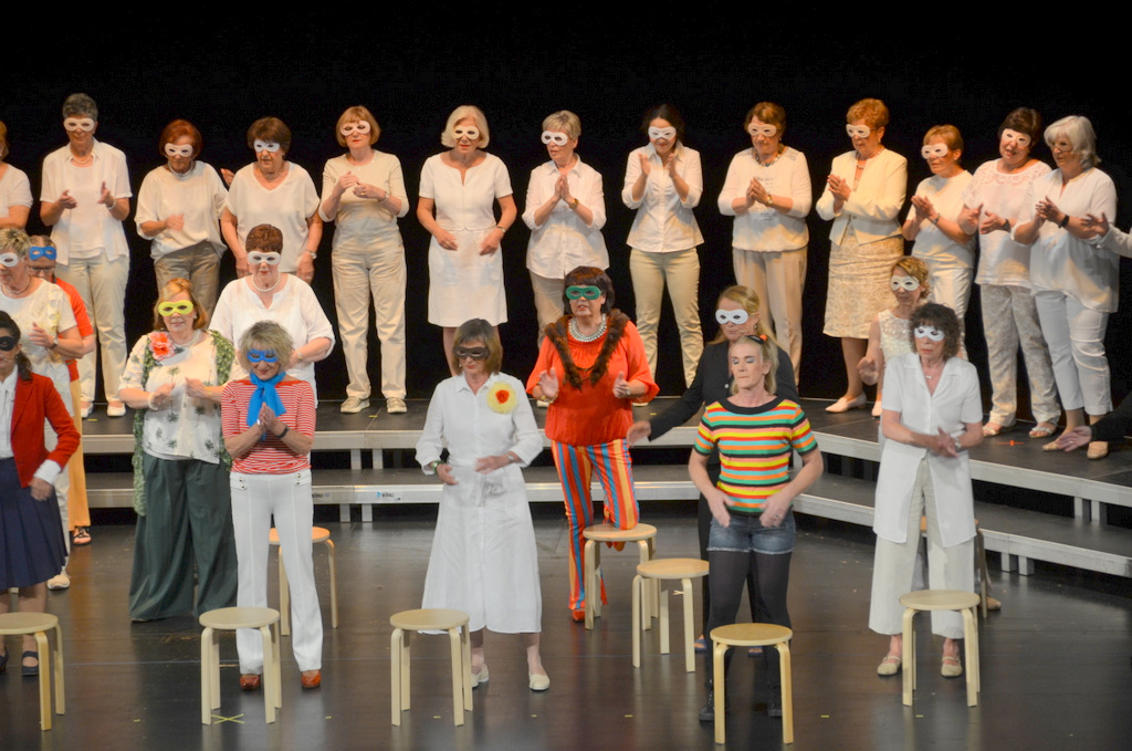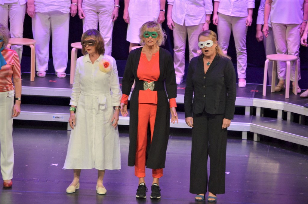 39 Sängerinnen und zwei Gastsänger boten einen vergnüglichen Nachmittag mit bekannten Songs aus Pop, Musical und Schlager. Die gängigen und ins Ohr gehenden Songs von Abba, Udo Jürgens und Joy Fleming wechseln mit schwungvollen Filmthemen aus Miss Marple und Mary Poppins. Kaum ein Stück, das die Zuhörer nicht kannten. Da wurde begeistert mitgeklatscht oder zumindest eifrig mit dem Fuß im Takt gewippt.