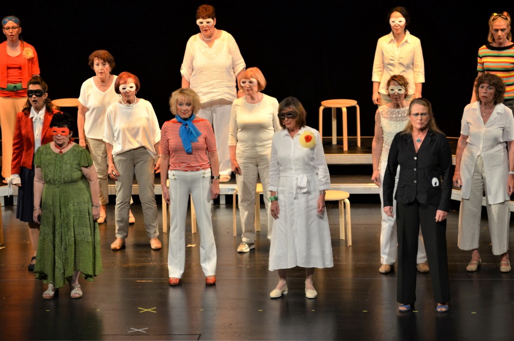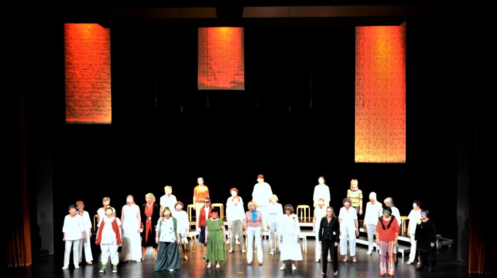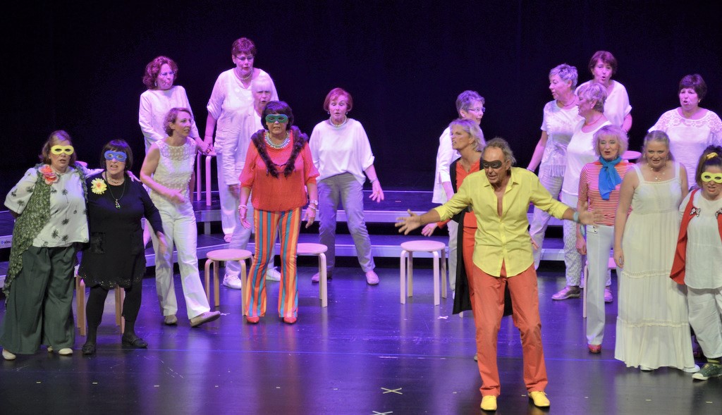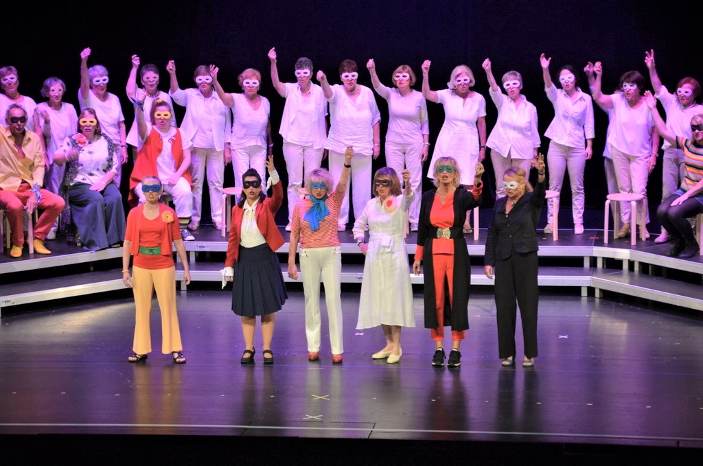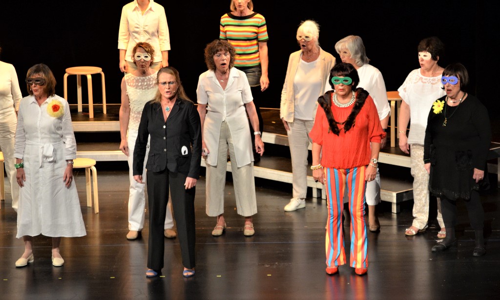 SOLINGEN (mh) – „Willkommen in Tinas Therapie-Tempel“. So begann die szenisch-musikalische Revue des Frauenchors Solingen am Sonntag im Theater vor einem fast vollen Pina-Bausch-Saal.