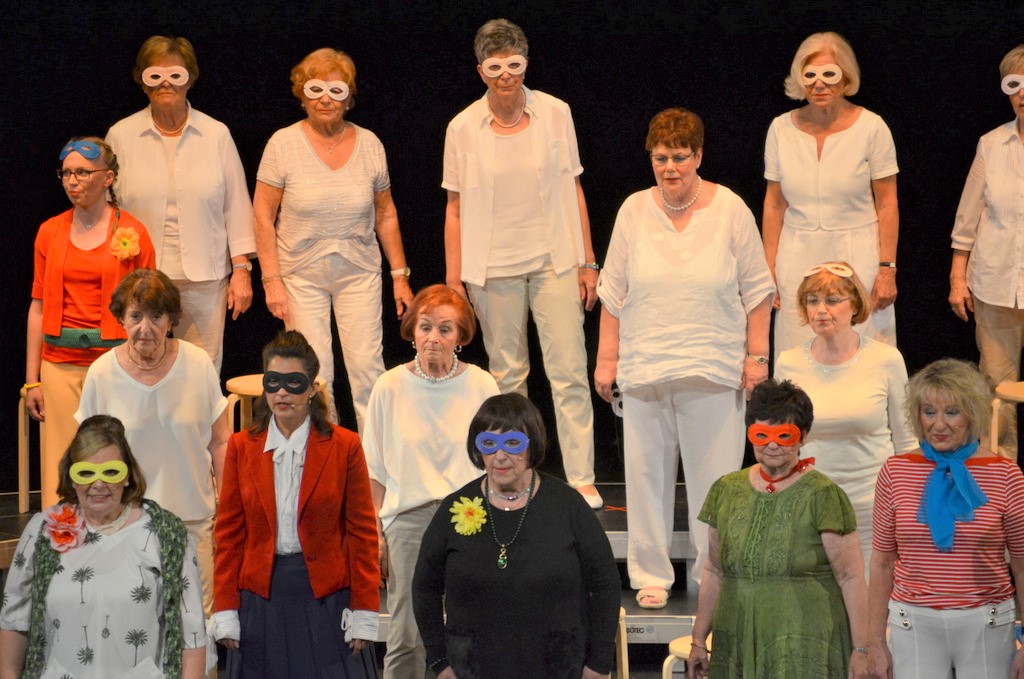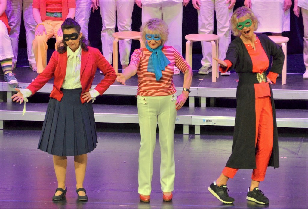 Ottilie, Sophie, Marianne und Liliane versammeln sich zur Titelmelodie von „Miss Marple“ rund um einen Tisch und spielen Karten. Der Einsatz: Ihre Männer. Die erste Stunde verging sehr vergnüglich wie im Flug. Nach der Pause ging es genauso schwungvoll weiter. Wohlverdienter Applaus war sowohl den Chormitgliedern als auch dem Orchester gewiss.