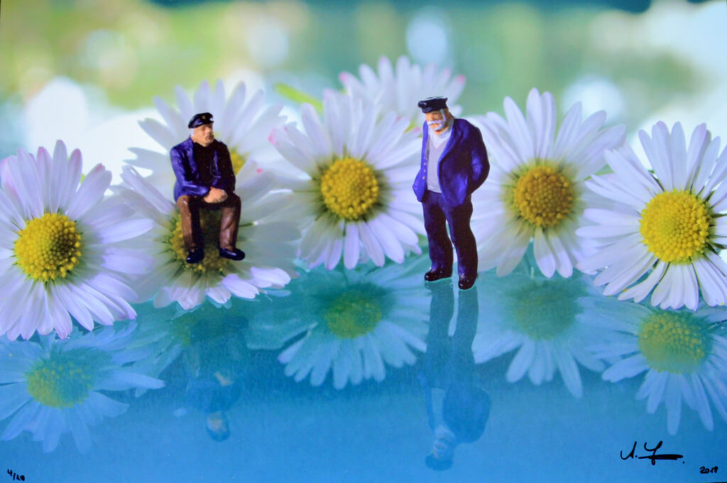 „Fotografie ist so viel mehr als Schnappschüsse aus dem Familienleben“, hat die Fotokünstlerin erkannt. „Es geht dabei weniger um die Technik als darum, den entscheidenden Blickwinkel zu finden.“ Vor ein paar Jahren hatte sie auf einem Weihnachtsmarkt ein Bild mit Miniaturautos gesehen und war sofort begeistert. Seitdem lässt sie diese Form der Fotografie nicht mehr los. „Ich sehe tatsächlich mittlerweile überall die kleinen Figuren“, lacht sie und verrät: „Manchmal reichen da schon Kleinigkeiten. Steht ein Aschenbecher auf dem Tisch, platziere ich gedanklich sofort eine Miniatur mit einem Besen hinein.“ Mittlerweile hat sie daheim eine ansehnliche Sammlung von mehreren hundert dieser Modellfigürchen.