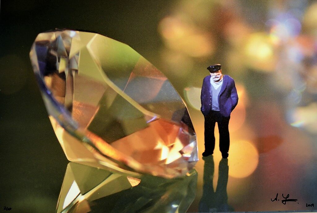 Es ist eine Welt ganz eigener Realitäten, die dem Besucher Geschichten erzählt. Die Mofafahrer auf dem Maßband – woher kommen sie? Soll etwas gemessen oder gezählt werden? Arbeiter stehen mit Werkzeugen auf Eiswürfeln? Was passiert, wenn die Hämmer zuschlagen? Gehen die Eiswürfel zu Bruch? Achtet man auf die kleinen Dinge, entdeckt man die großen von selbst.