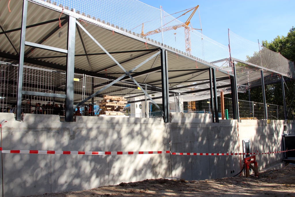 Ein gutes halbes Jahr später war die Baugrube bereits ausgehoben und die erste Pfahlgründung gesetzt. „Die Handwerker hatten einen heißen Sommer, die haben kräftig durchgearbeitet. Es geht gut voran, in der kommenden Woche folgt schon das Dach über der eigentlichen Badeanstalt“, kündigte Paul Gerrits, Geschäftsführer des Bauunternehmens Pellikaan, an.