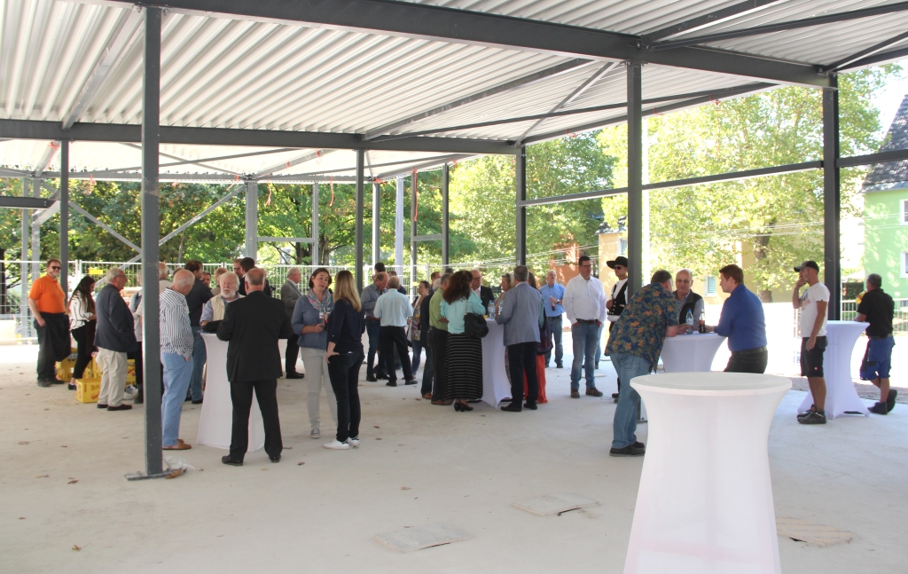 SOLINGEN (bgl) – Der den Becken vorgelagerte Eingangsbereich mit Umkleidekabinen des neuen Hallenbads Vogelsang ist bereits überdacht. Der Rohbau steht, so dass am Dienstag auf der Baustelle an der Focher Straße Richtfest gefeiert werden konnte. „Dass ein öffentlicher Bau voll im Zeit- und in Kostenplan ist, darf noch einmal ganz besonders unterstrichen werden“, betonte Oberbürgermeister Tim Kurzbach in seiner Ansprache. Die Eröffnung des neuen Hallenbads ist für das kommende Frühjahr vorgesehen. Rund neun Millionen Euro investiert die Stadt Solingen in das Familienbad. Eine Sanierung des maroden Vorgängerbaus sei nicht mehr rentabel gewesen.