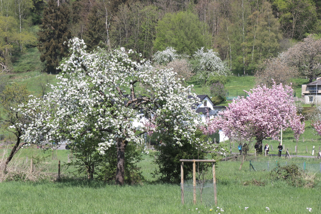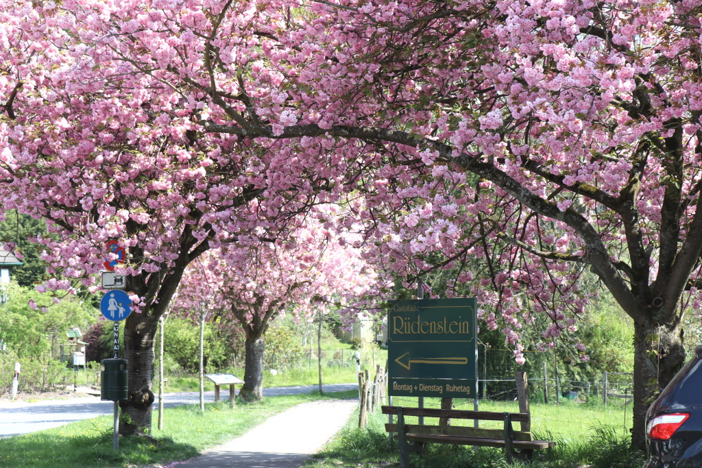 Kein Wunder, das Wandersleute an den prachtvollen Bäumen stehenbleiben und zum Handy greifen. Denn die pinke Farbenpracht muss einfach festgehalten werden. Ein Naturschauspiel, das sich in Rüden jedes Jahr wiederholt. Wer das sehen und erleben möchte, der muss sich allerdings beeilen. Denn das Zeitfenster ist klein. Die Kirschbäume stehen nämlich nur wenige Wochen in Blüte, derzeit beginnen sie schon die Blütenblätter abzuschütteln.