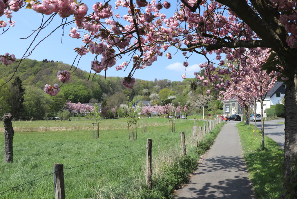Während der Hochwasser-Katastrophe im Juli vergangenen Jahres, wurde auch Rüden schwer getroffen. Die Wupper trat über ihre Ufer und überschwemmte zahlreiche Häuser und sorgte für Verwüstungen. Davon zeugen hier und dort noch immer entwurzelte Bäume. Vielmehr sind dieser Tage aber die in voller Blüte stehenden Kirschbäume, die im gesamten Ort verteilt stehen, wie jedes Frühjahr zum Blickfang geworden.