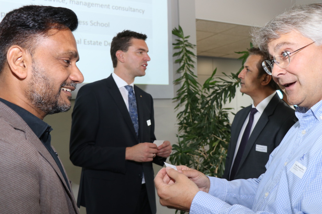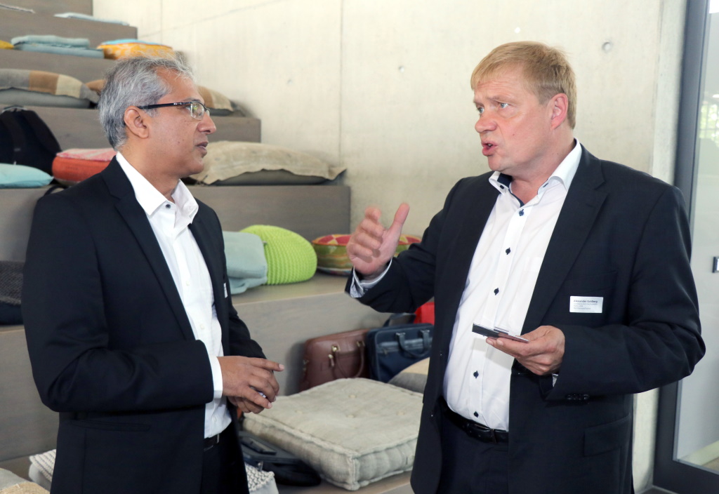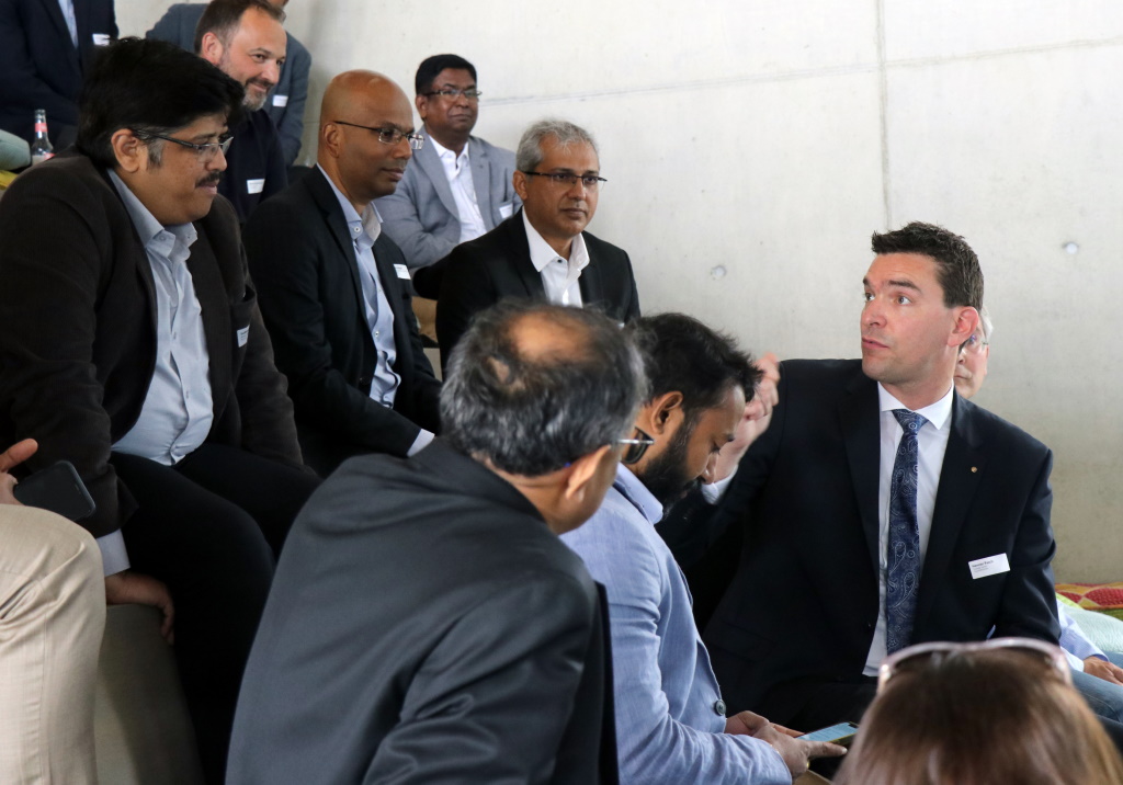 Beide erklärten in Ihren Antrittsreden ihr großes Interesse an wirtschaftlicher Kooperation. Stephanie Beeres von NRW.Global Business stellte den Fokus des Landes Nordrhein-Westfalen für Ansiedlungen von indischen Unternehmen in den Vordergrund. Henner Pasch, Präsident der Bergischen IHK, betonte in seiner Begrüßung die Standortvorteile im Bergischen Städtedreieck ebenso, wie den weiteren Bedarf der Region an digitalem Service und digitaler Transformation. Frank Balkenhol, Geschäftsführer von Solingen.Business, erläuterte die Solinger Innovations-Standortstrategie mit dem IT-Fokus in Ohligs. Dabei wies er mit einem Augenzwinkern darauf hin, dass sich hier ein „Solicon Valley“ entwickeln könnte.