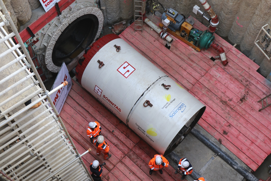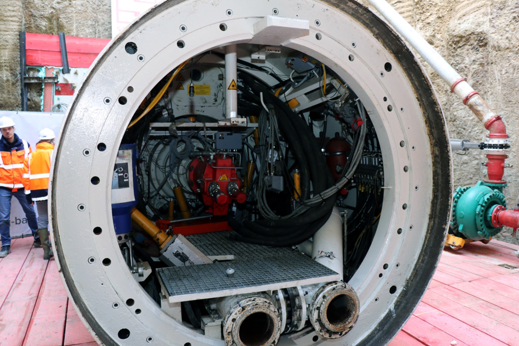 Bereits im vergangenen Februar wurde die Vortriebsmaschine auf den Namen „Claudia“ getauft. Kurz darauf nahm das wuchtige Gerät seine Arbeit auf. Insgesamt werden 283 Rohe geliefert und eingebaut. Der Außendurchmesser beträgt 2,40 Meter und der Innendurchmesser 1,80 Meter.
