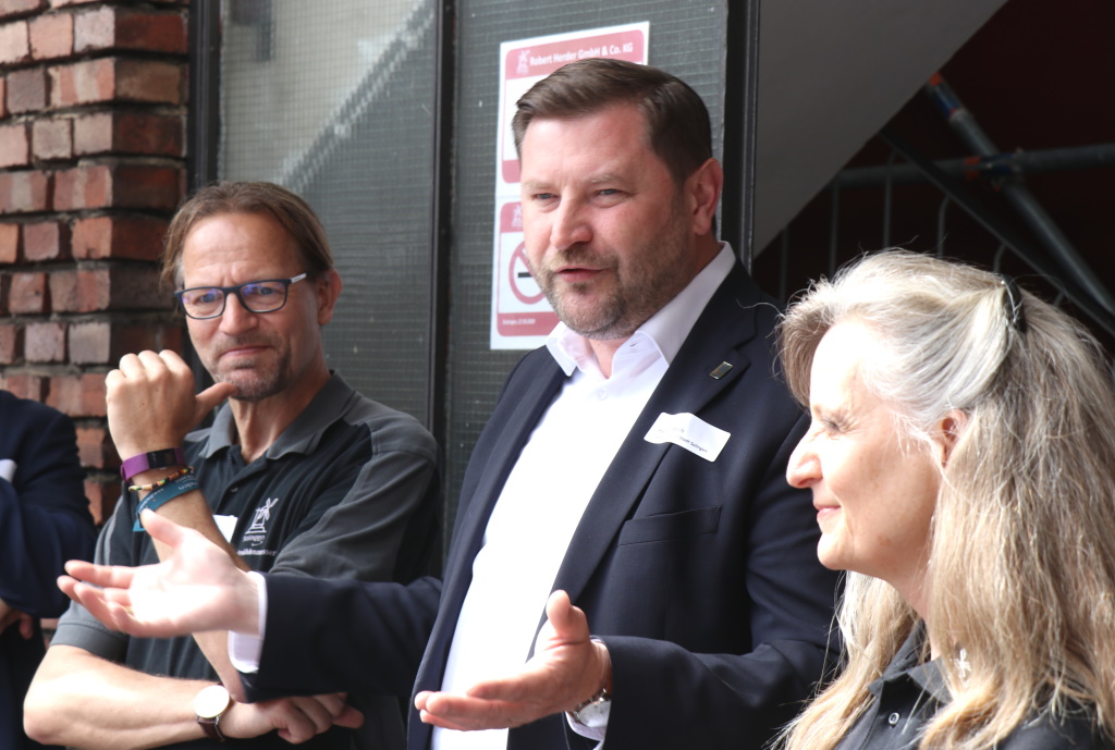 SOLINGEN (bgl) – Es war nicht nur einfach ein rundes Jubiläum, das die Solinger Schneidwarenfirma Robert Herder GmbH & Co. KG mit Sitz an der Ellerstraße in Ohligs am Freitag feierte. Man blicke auch zurück auf eine 150-jährige Firmengeschichte, die Höhen und Tiefen mit sich brachte. Am Freitag begrüßten Giselheid Herder-Scholz und Frank Daniel Herder, Geschäftsführer der Robert Herder GmbH & Co. KG, der auf dem Werksgelände zahlreiche Gäste und Gratulanten aus Verwaltung, Stadtgesellschaft und Industrie begrüßen konnte.