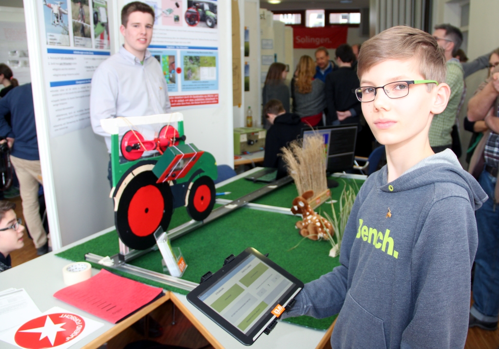 Ein weiterer Lokalmatador, der am Samstag sein Projekt der Öffentlichkeit vorstellte, war Delian Asllani. Mit seinen gerade mal zehn Jahren war der Schüler der Grundschule Gerberstraße der jüngste Teilnehmer des Wettbewerbs. Das hielt ihn aber nicht davon ab, Jury und Besuchern selbstbewusst sein Projekt vorzustellen. Der Zehnjährige hat einen Stromkreis ganz genau unter die Lupe genommen. Dafür bekam der kleine Forscher ein Zeitschriften-Abo. Zwei weitere Gruppen aus Solingen vertraten zudem die Klingenstadt auf dem Regionalwettbewerb.