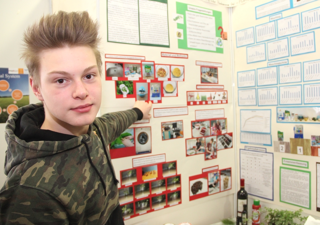 Gemeinsam mit Emma Hankammer (12) und Luca Scheurer (14) testete er nicht nur Waschmittel, das Trio hat sogar ein eigenes Waschpulver entwickelt. Das überzeugte die Jury, so dass die Lokalmatadore mit ihrem „Öko-Waschmitteltest“ den ersten Preis des Regionalwettbewerbs von Jugend forscht gewannen.