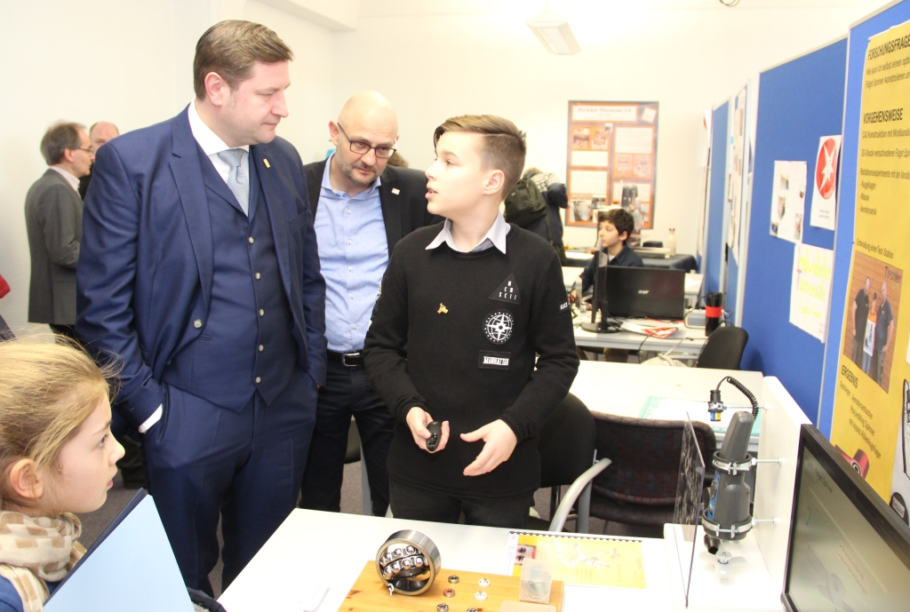 „Ich ermuntere aber, viele Unternehmerinnen und Unternehmer Mut und Vertrauen in die Köpfe von jungen Leuten zu haben und in sie zu investieren. Und gemeinsam mit ihnen durchzuhalten, wenn ein Projekt auch mal nicht auf Anhieb gelingt. Das Vertrauen zu haben, dass es gut ist zu investieren und gemeinsam zu bestehen, auch wenn man mal scheitert. Das zeichnet Forscher aus, die aus dem Scheitern heraus auch wieder die Chance erkennen“, betonte Oberbürgermeister Tim Kurzbach in seinem Grußwort.