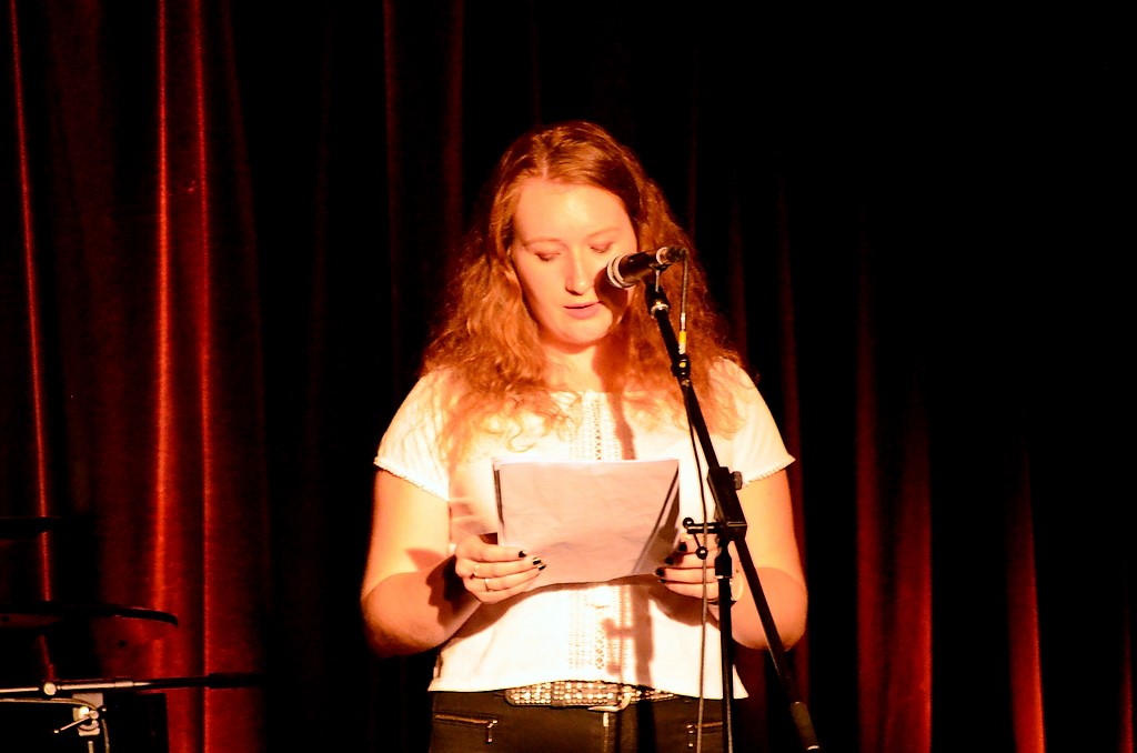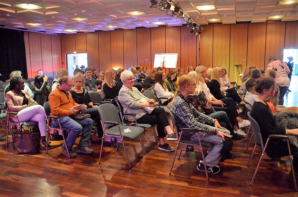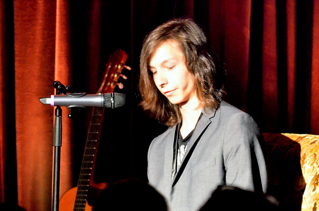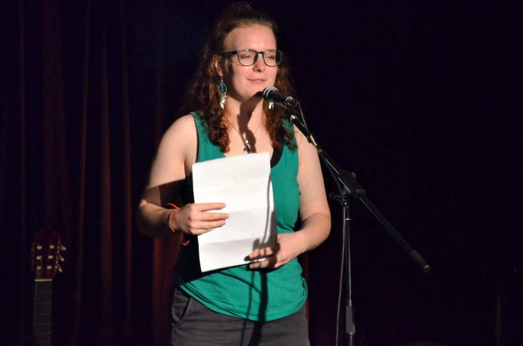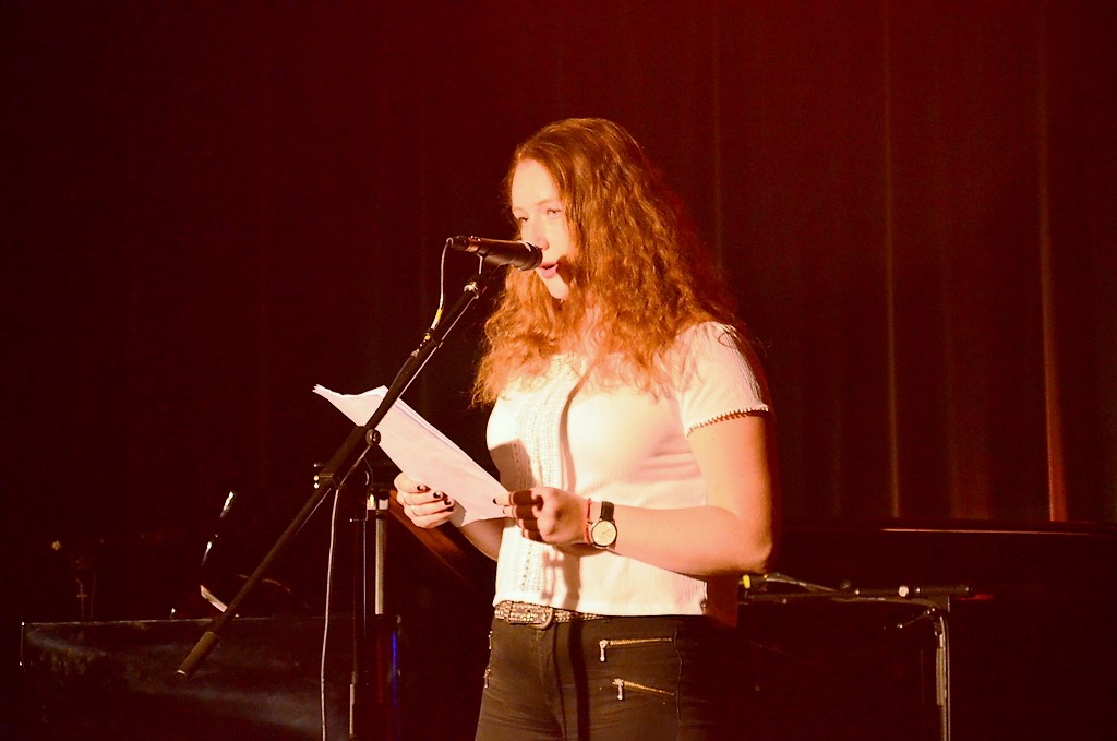 Im Foyer hingen die nicht ausgewählten Werke, unter denen bemerkenswerte Ergebnisse zu finden waren. Wenn die es nicht ins Programm geschafft hatten, wie mochten dann die Texte sein, die man jetzt zu hören bekam? Rund sechzig Besucher warteten gespannt auf das Ergebnis. Ob sie nun nervös waren oder nicht – von der Jüngsten mit 13 Jahren bis zur 20-Jährigen meisterten alle ihren Auftritt wirklich gekonnt. Ihre Geschichten, mal humorvoll, mal emotional stark berührend, rissen das Publikum mit. Die Thematik reichte von Liebe bis Suizid, von Gefühlschaos bis zu verkopften Erwachsenen, die in ihren Vorurteilen gefangen sind. Nils Sieper brachte es in seiner Moderation gekonnt auf den Punkt: „Toll, dass wir junge Menschen haben, die sich auch mit solch schwierigen Themen befassen, über die oft lieber geschwiegen wird.“