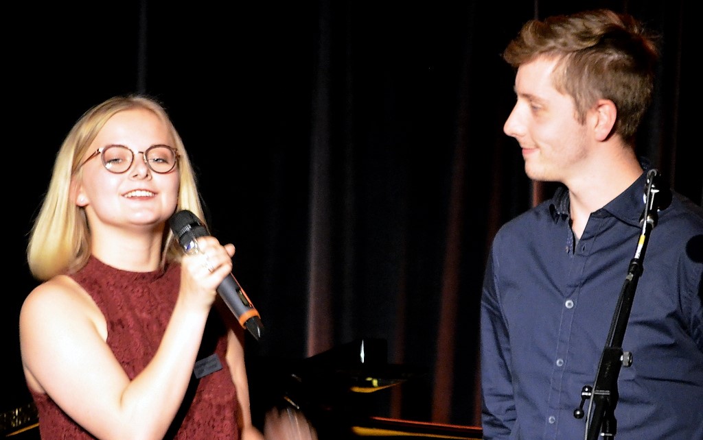 Die drei Nachwuchsmusiker Miriam Karlstedt, Manuel Kästner und Robert Schreiber sorgten für das musikalische Rahmenprogramm zwischen den Vorträgen. Während Kästner und Schreiber virtuos ihre Instrumente einsetzten, begeisterte Miriam Karlstedt mit ihrer kraftvollen Stimme und zum Teil selbst verfassten Liedtexten. Die 21-Jährige absolviert derzeit beim Kulturmanagement ihre Ausbildung zur Fachkraft für Veranstaltungstechnik.