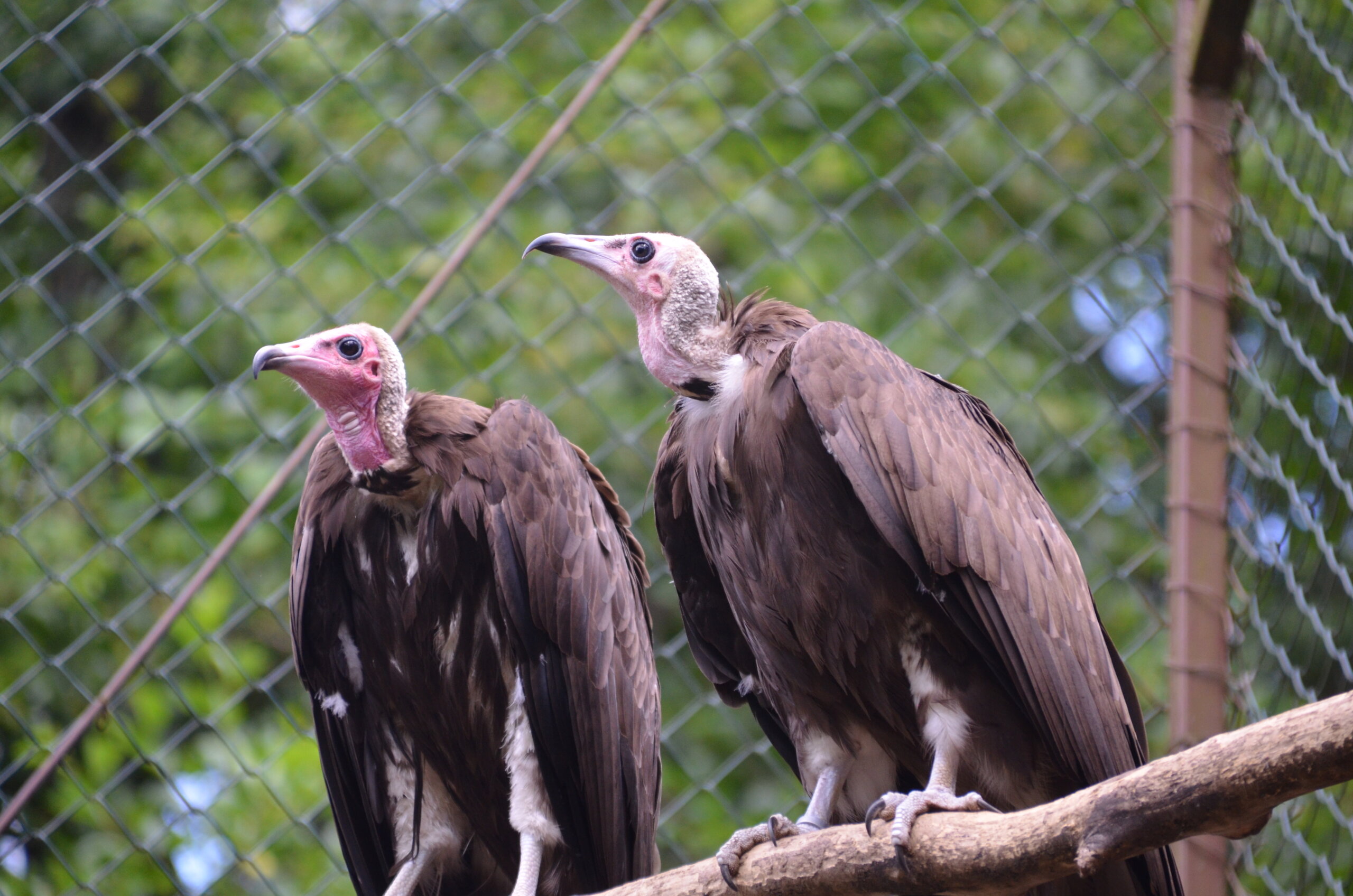 Es ist ein bemerkenswerter Anblick, sie nach dem Regen zu beobachten. Dann sitzen sie mit ausgebreiteten Flügeln in der Sonne, lassen sich trocknen und genießen die Wärme. Mit einer Körpergröße von 60-70 cm gehören Kappengeier eher zu der kleineren Spezies. Mit ihrer eindrucksvollen Spannweite sind diese Vögel durchaus gute Flieger– auch wenn sie lieber gemütlich von Ast zu Ast springen. Schließlich kostet Fliegen viel Energie. „Geier sind überaus clevere Tiere“, erklärt die Tierpflegerin. „Wenn sie merken, dass es genügend Futter gibt, sorgen sie für Nachwuchs. Bei Futterknappheit sehen sie von einer Brut ab.“