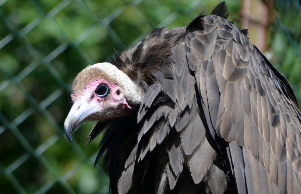 Kappengeier sind als Schmutzgeier bekannt und ernähren sich hauptsächlich von Aas. Ihr ungefiederter Kopf ist dabei äußerst praktisch: So bleibt er beim Verzehr der Innereien schön sauber. Er erinnert ein wenig an die schulterlangen Perücken der englischen Gerichtsbarkeit. Neben dem Aas bekommen sie auch anderes Futter. Bei einseitiger Ernährung würde die extrem scharfe Magensäure den Magen der Tiere zersetzen. Geier leisten in der Natur eine wichtige Aufgabe. Durch ihr Fressen von Aas helfen sie, das Ausbreiten von Krankheiten zu verhindern. Interessant ist vor allem, dass die Geier keine Nasenscheidewand haben – wiederum eine praktische Einrichtung der Natur. Das Aas hat einen absolut penetranten Geruch. Wenn die Geier riechen könnten, würde sie das vermutlich vom Fressen abhalten. So aber merken sie nichts davon und genießen ihre Nahrung.