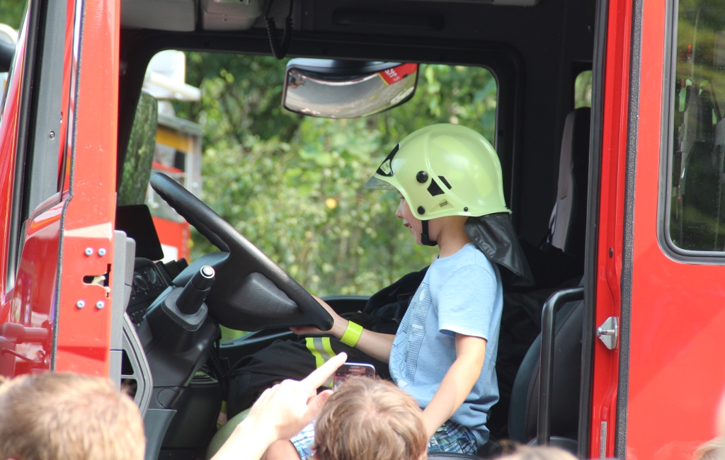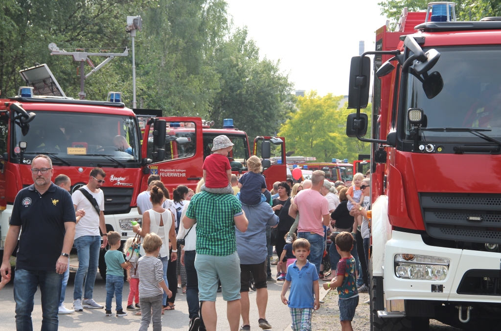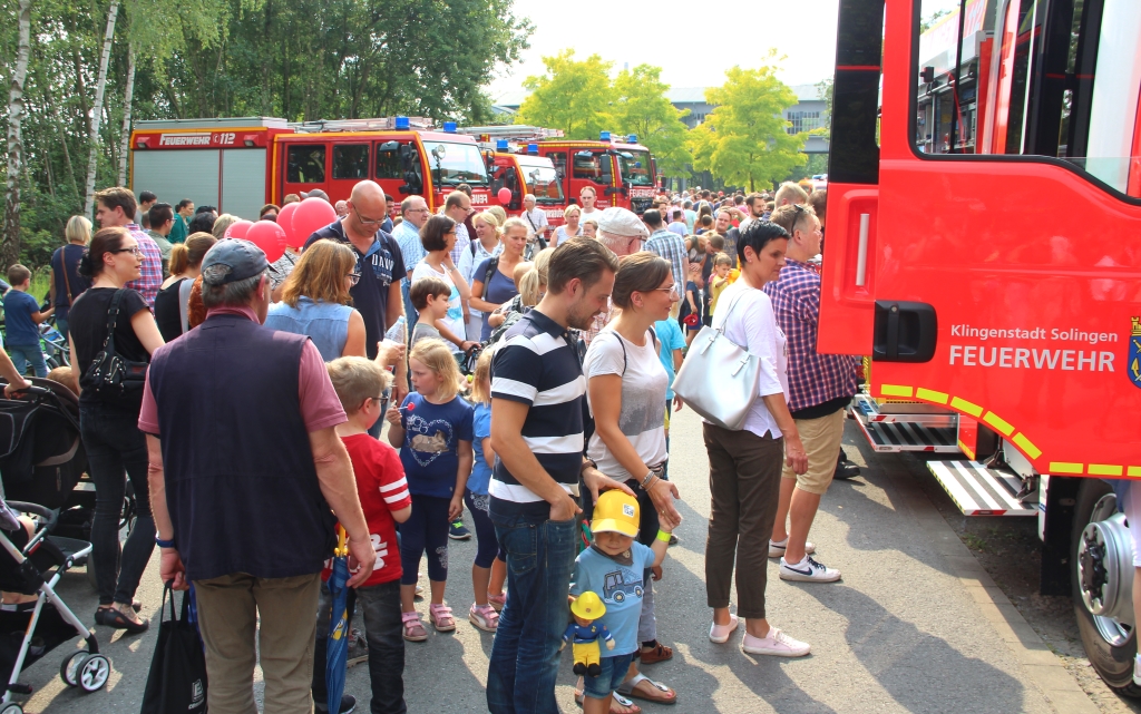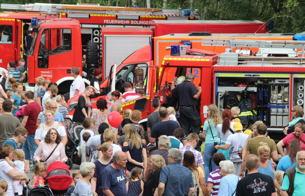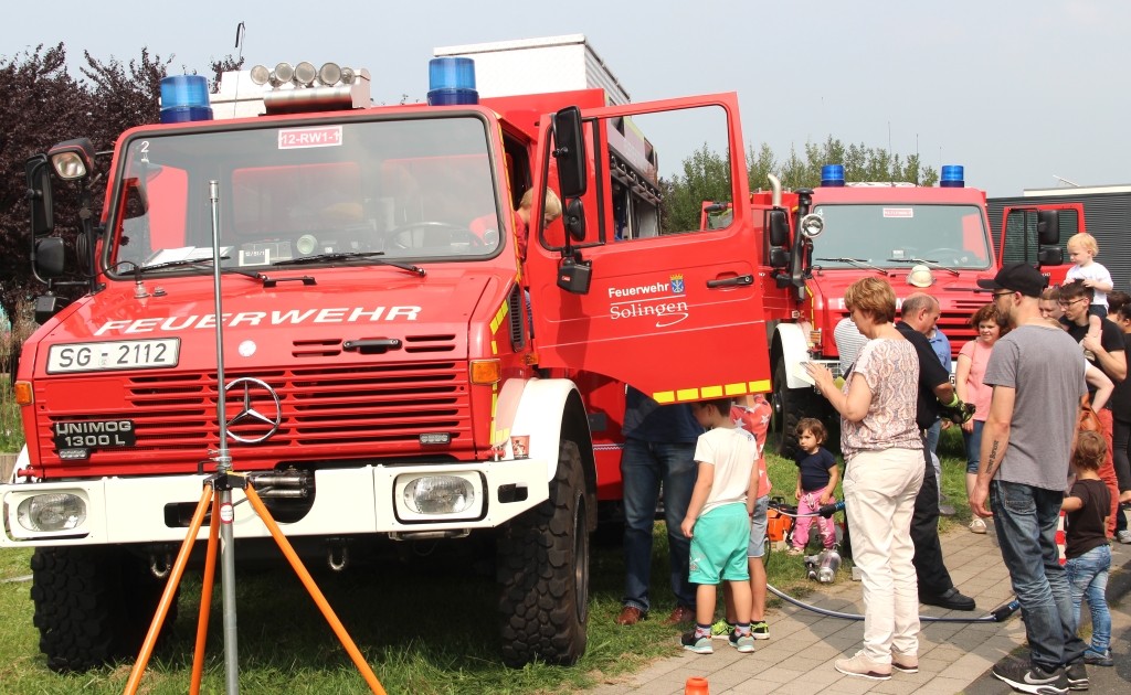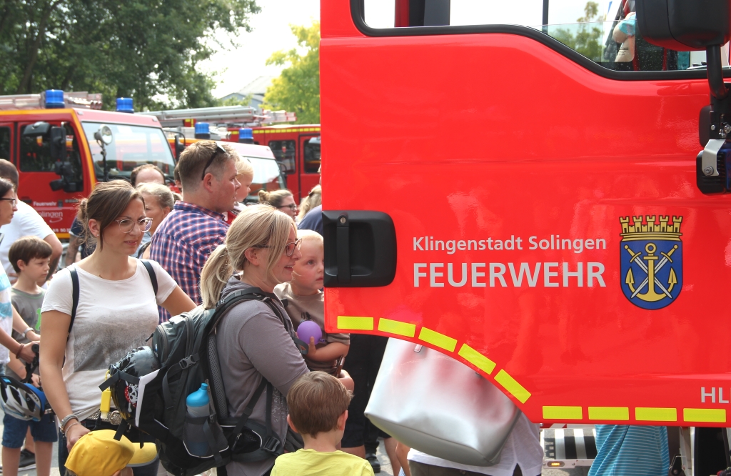 In die Autos klettern, mal ausprobieren, wie es sich anfühlt hinter dem Steuer eines Löschfahrzeuges zu sitzen und dabei auch mal einen Helm anziehen? Kein Problem, mit ganz viel Geduld kamen die Frauen und Männer von Solingens Feuerwehr fast jedem Wunsch nach. „Die Besucherresonanz war ja das letzte Mal schon gut, aber heute ist sie ein echter Hammer“, freute sich Frank Breitgraf von der Berufsfeuerwehr Solingen, der das Feuerwehrfest mitorganisierte.