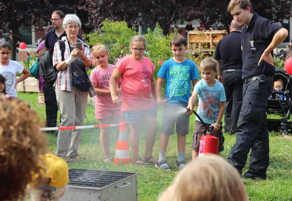 Dementsprechend gut besucht war der Südpark am Samstagnachmittag, als Kids und Eltern die zahlreichen kunterbunten Angebote erkundeten. Zu sehen gab es außerdem Einsatzübungen: Die Jugendfeuerwehr und die Löscheinheit 5 (Böckerhof) zeigten einem begeisterten Publikum ihr Können. Dazu gab es selbstverständlich ein großzügiges kulinarisches Angebot und zahlreiche weitere Aktionen für die Kinder.