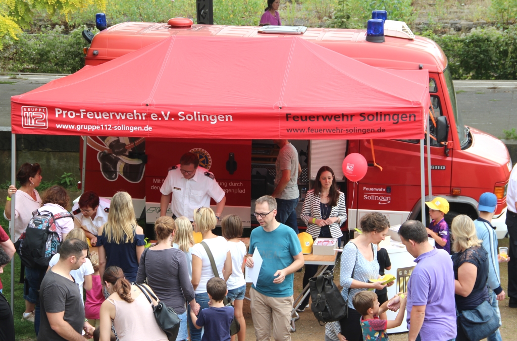 Violettas Puppenbühne und eine Riesenhüpfburg sorgten ebenso für strahlende Gesichter, wie Wasser-Marsch-Geschicklichkeits-Spiele und eine Vorführung im „Rauch-Zelt“. Teilweise bildeten sich sogar lange Schlangen vor den einzelnen Angeboten. Auch Petrus hatte am Samstag gute Laune und sorgte für sommerliche Stunden im Solinger Südpark.