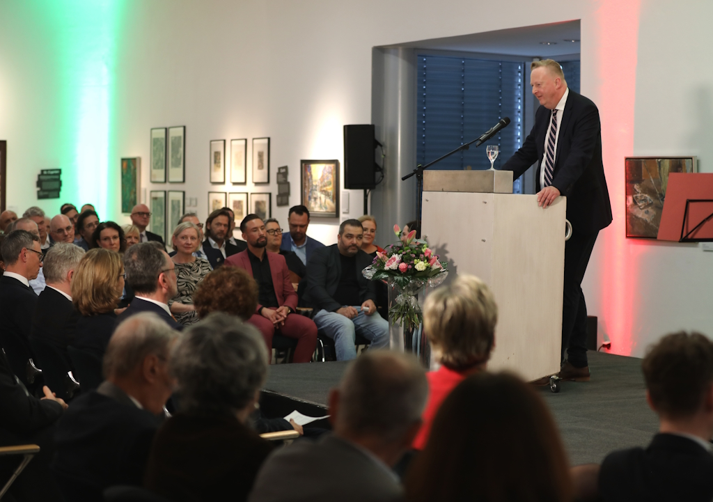 SOLINGEN (bgl) – Im Meistermann-Saal des Kunstmuseums Solingen wurde am Montag Prof. Dr. Thomas Standl nach 21 Jahren als Chefarzt der Anästhesie am am Städtischen Klinikum Solingen offiziell verabschiedet. Der große Saal war nahezu vollständig gefüllt, zahlreiche Kolleginnen und Kollegen, Vertreter der Stadt, viele langjährige berufliche Weggefährten sowie seine Familie begleiteten Standl, zuletzt Medizinischer Geschäftsführer des Solinger Klinikums, an diesem Nachmittag.