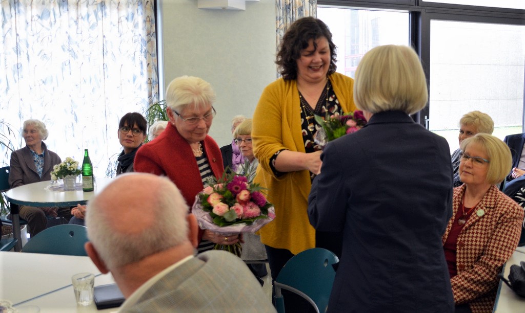 Vor einigen Jahren übernahm Christel Klein die Leitung des Besuchsdienstes. Bei der Feierstunde überreicht sie den Gründungsmitgliedern Guhra und Pickard Urkunden für 40 Jahre Dienst. Weitere Auszeichnungen gehen an Mitstreiterinnen für mehr als 2.500 Stunden ehrenamtlicher Tätigkeit im vergangenen Jahr.