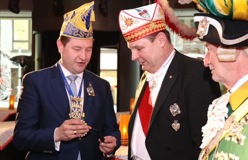 „Michael Everwand ist Solinger, seine Eltern leben in der Klingenstadt. Der Kontakt kam letztlich über André Hitzegrad zustande“, erklärte Joachim Junker, Präsident der Prinzengarde Blau-Gelb Ohligs und Vorsitzender des Festausschusses Solinger Karneval (FSK). Gastronom Hitzegrad, selbst Mitglied der Ohligser Prinzengarde, stielte das Treffen über Michael Everwands Eltern ein, die regelmäßig in seinem Lokal zu Gast seien. „So ist das Ganze dann mit der Zeit gewachsen, wir haben den 6. Februar schließlich festgehalten“ freute sich Junker.
