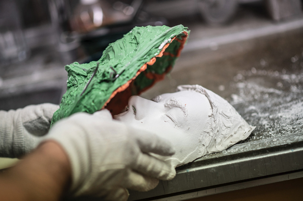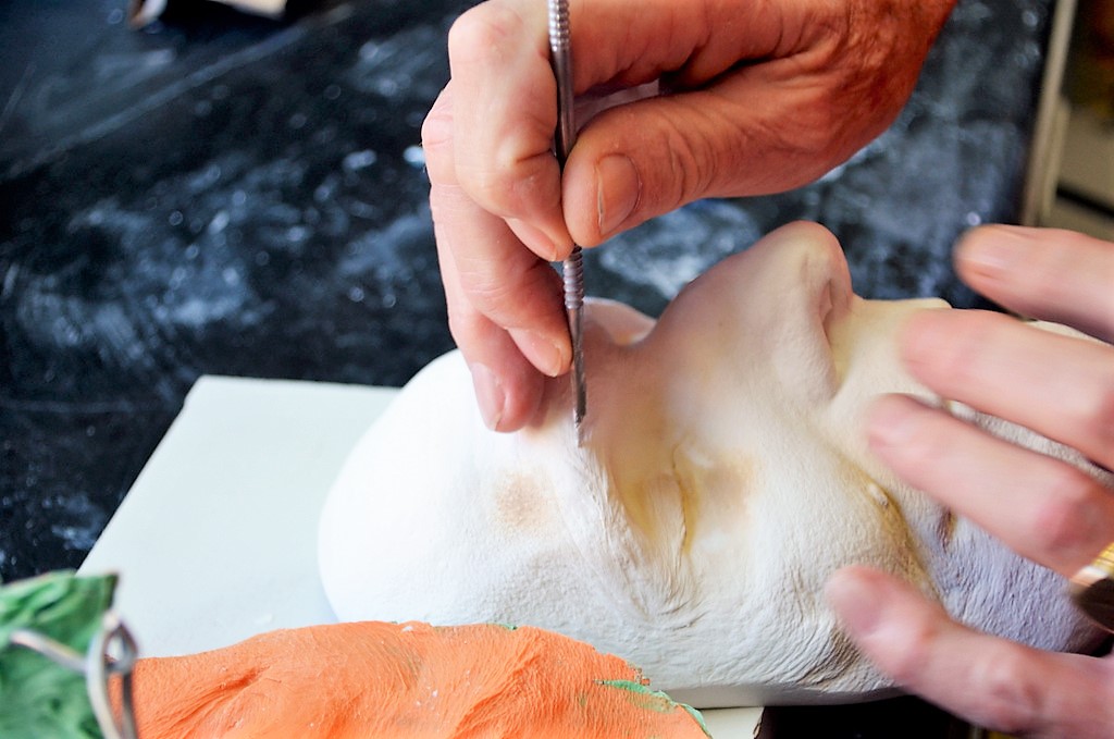 Bei Überlegungen zu einem Weihnachtsgeschenk für seine Frau war der gelernte Zahntechniker auf die Idee gekommen, einen Gesichtsabdruck zu formen. Damit hatte alles begonnen. Bei der Erinnerung an die ersten Versuche lacht er von einem Ohr zum anderen: „Das von mir verwendete Silikon war blau und färbte ab.“ Nach diversen Experimenten verwendet der Künstler jetzt die selbst entwickelten, patentierten Silikone „Fine“ und „Stabilo“.