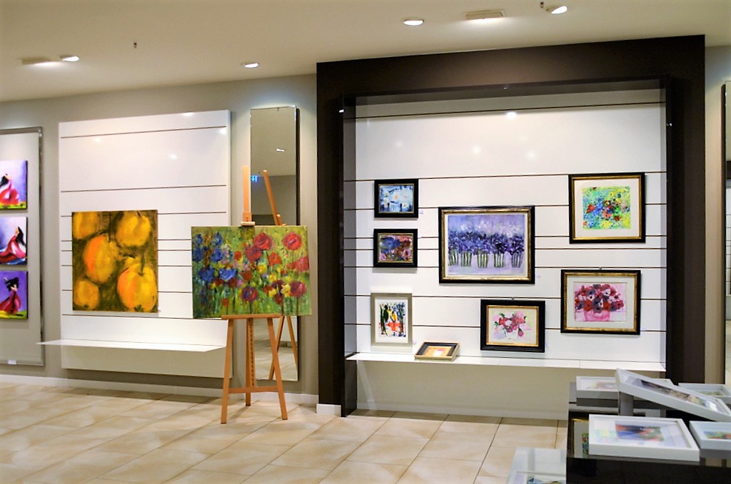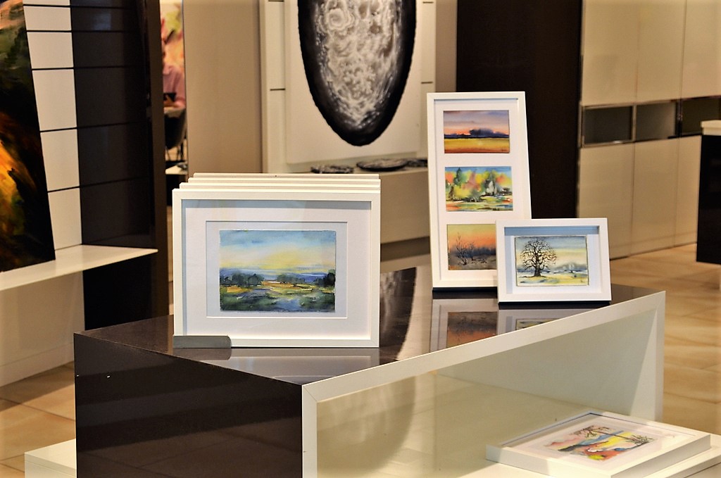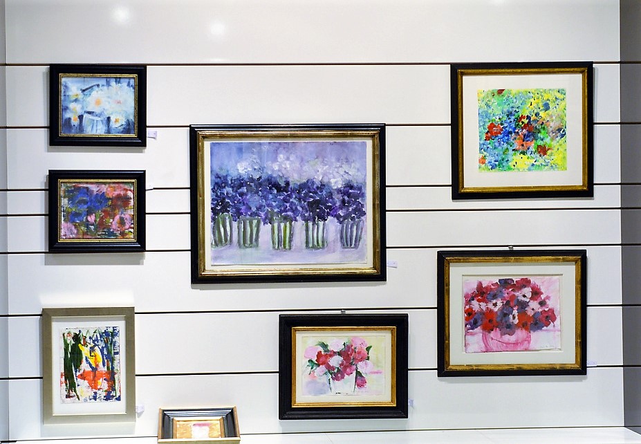 Erstmals dabei ist die in Düsseldorf geborene und in Bayern aufgewachsene Künstlerin Ima Mameghani mit 16 Arbeiten. Seit 1982 beschäftigt sie sich intensiv mit der Malerei. Nach diversen Malstudien, unter anderem in Frankreich, fand sie zu ihrem eigenen Malstil. Gerahmte und ungerahmte Werke wechseln mit großen und kleinen Formaten, einige quadratisch, andere im Querformat. Die Künstlerin bevorzugt für ihre Darstellungen Interpretationen der Natur. Landschaften, Obst, Blumen und Pflanzen – mal als Gouache, dann wieder in einer Öl/Acryl-Mischtechnik. Neben den Werken im Innenbereich schmücken vier vorwiegend in Gelb gehaltene Darstellungen das linke der beiden Schaufenster.