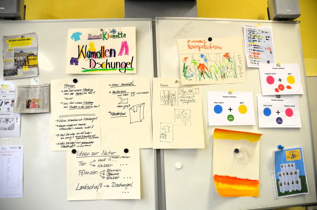 Das Projekt KunstKlamotte-klaMOTTENdschungel fördert ein tiefgreifendes Verständnis für den Wert von Ressourcen. Mit Buntstift und Ölpastellkreiden entwerfen die Kinder zunächst kleine Musterboxen, bevor sie sich an die großen Container wagen. „Eine feste Regel heißt: Erst das Grobe, dann das Feine“, erklärt Müller-Kölmel. So lernen die Kinder Schritt für Schritt den Umgang mit verschiedenen Materialien und Techniken – von Acrylfarben bis hin zu Stencil-Graffiti. Diese Herangehensweise ermöglicht es ihnen, ihre künstlerischen Fähigkeiten zu entwickeln und gleichzeitig ein Bewusstsein für den kreativen Prozess zu schaffen.