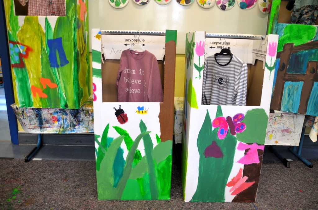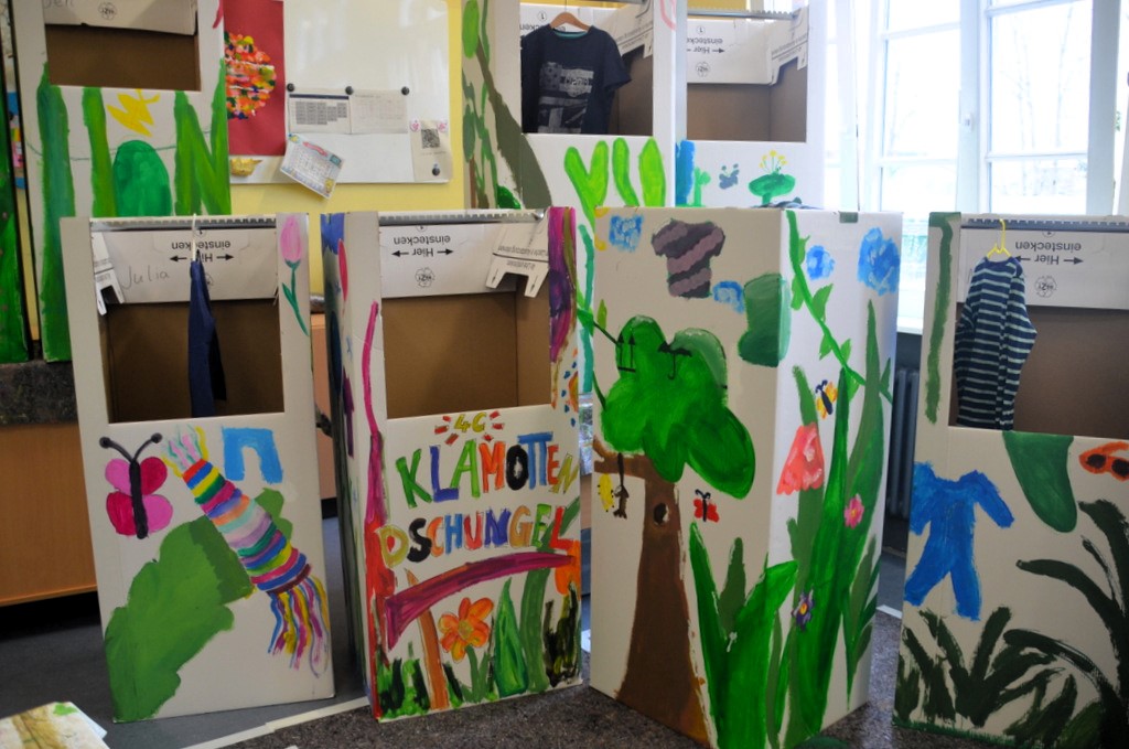 Unter der Anleitung der Solinger Künstlerin Susanne Müller-Kölmel verwandeln die Schüler einfache Pappcontainer in farbenfrohe Kunstwerke. Diese Kleiderboxen, die etwa 140 cm hoch und 60 x 60 cm breit sind, dienen nicht nur als kreative Ausdrucksform, sondern auch als Sammel- und Tauschstelle für gebrauchte Kleidung innerhalb ihrer Schule und im privaten Umfeld. Die Idee ist einfach: Statt alte Kleidungsstücke wegzuwerfen oder ungenutzt im Schrank verstauben zu lassen, können die Kinder ihre Sachen in den liebevoll gestalteten Boxen tauschen oder spenden.