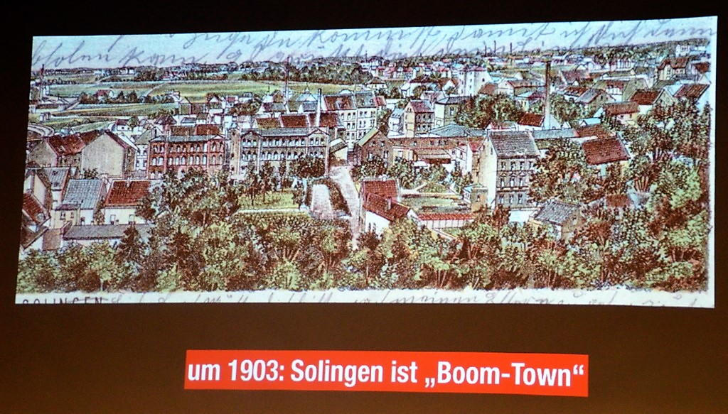 Kreativ verband der Journalist gedanklich den damaligen Lieferservice im Pferdewagen mit dem heutigen „Lieferando“. Er zeigte Lohnzettel, die noch viele kannten. „Wenn es Lohn gab, stand die Frau bei Feierabend am Fabriktor, bevor der Mann in die Kneipe ging.“ Mit solch netten Anekdoten vergingen 100 Jahre wie im Flug. Mit Annoncen, Reklame & Zeitungsmeldungen ließ er vor den Augen der Besucher ein Bild von Solingen vor 100 Jahren entstehen.