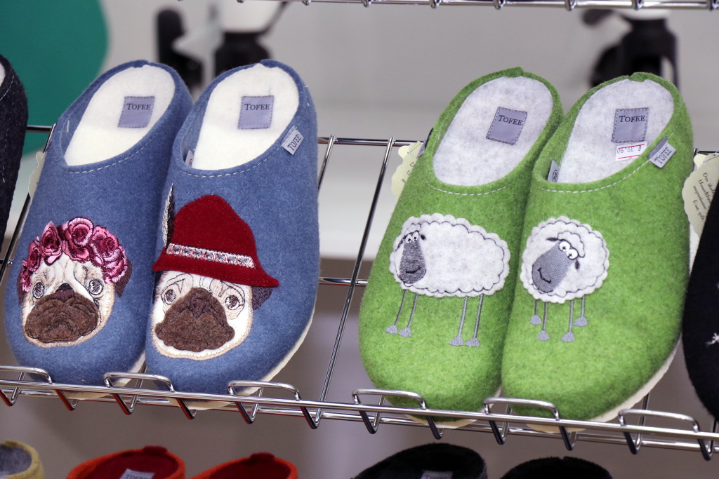 Bequeme und gesunde Pantoffeln mit kunterbunten Motiven eignen sich bestens als Weihnachtsgeschenk. (Foto: © Bastian Glumm)