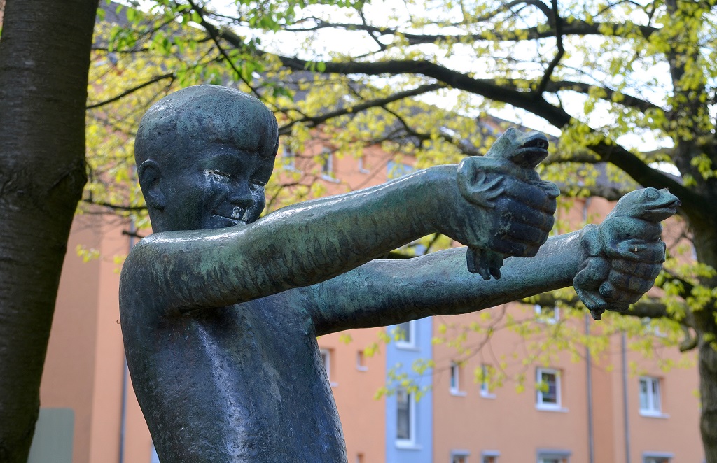 Zu ihren weiteren Plastiken gehören die „Lausbuben“, auch bekannt als „Spielende Kinder“. Die beiden 1,60 m hohen Plastiken von 1960, ein Junge und ein Mädchen, stehen an einer Brunnenanlage in einer Merscheider Hofschaft. Beide Kinder halten Frösche in den Händen. Für den Jungen stand Udo Ketterer, gleichfalls ein Neffe, Modell. Erneut sind es die bevorzugten Themen, schlicht und auf das Wesentliche reduziert. Deutlich erkennbar ist die typische Handschrift der Künstlerin. Die Figuren strahlen Unbeschwertheit und Fröhlichkeit aus.