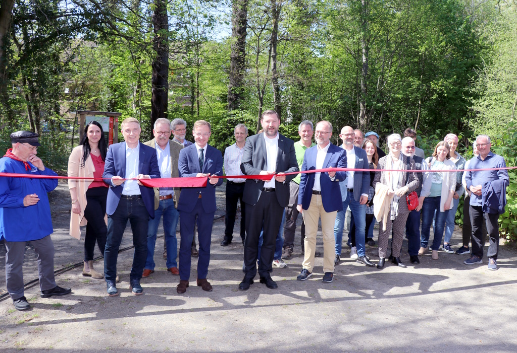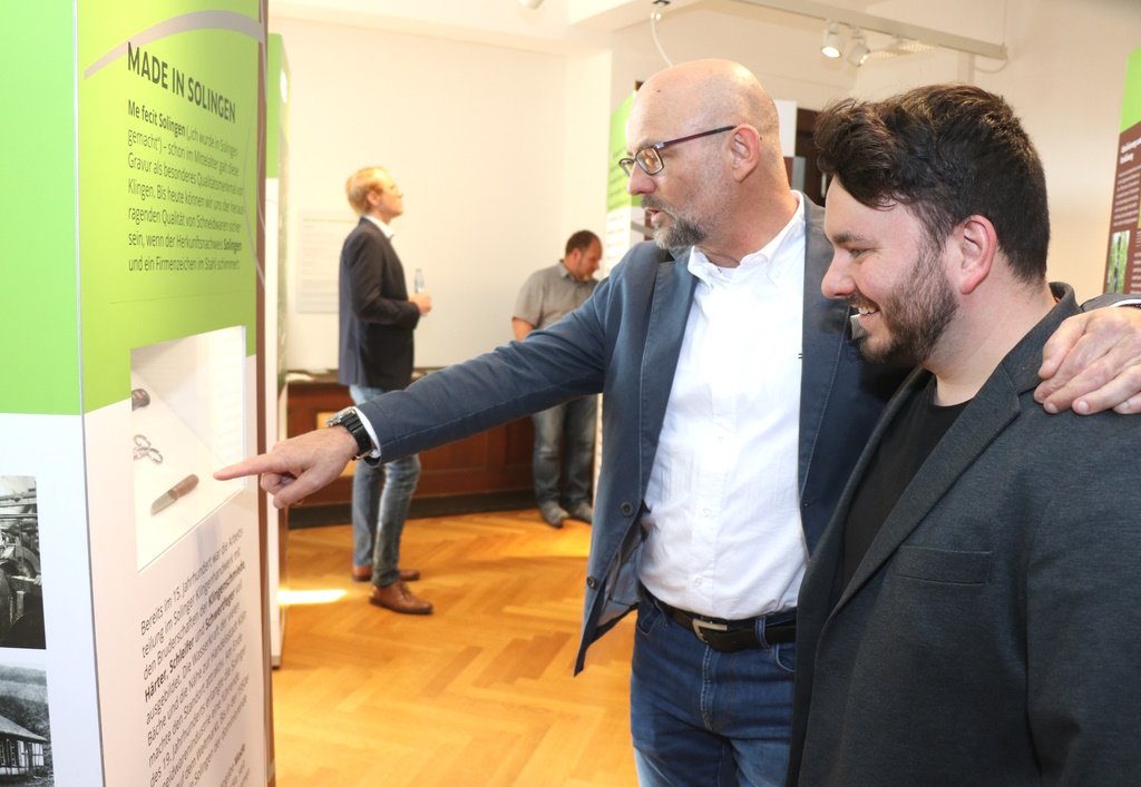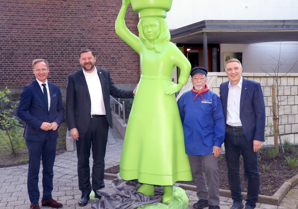 SOLINGEN (red) – Am Donnerstag weihten Staatssekretär Daniel Sieveke (Heimatministerium NRW), Oberbürgermeister Tim Kurzbach und Dr. Erik Werdel, Kreisdirektor des Rheinisch-Bergischen Kreises, den neuen „Liewerfrauenweg“ und die Ausstellung zur Geschichte der Lieferfrauen und der Solinger Stahlwarenindustrie auf dem Gelände des Gründer- und Technologiezentrums (GuT) ein. GuT-Geschäftsführer Frank Balkenhol begrüßte die Gäste. Der rund 16 Kilometer lange Wanderweg beginnt im unteren Bereich des Gründer- und Technologiezentrums.