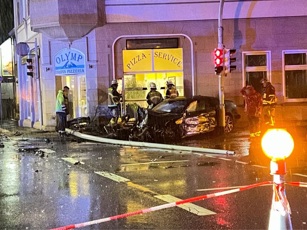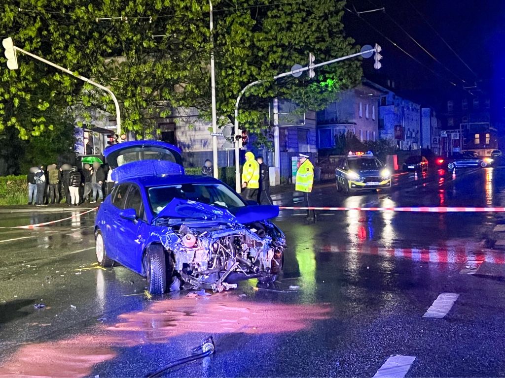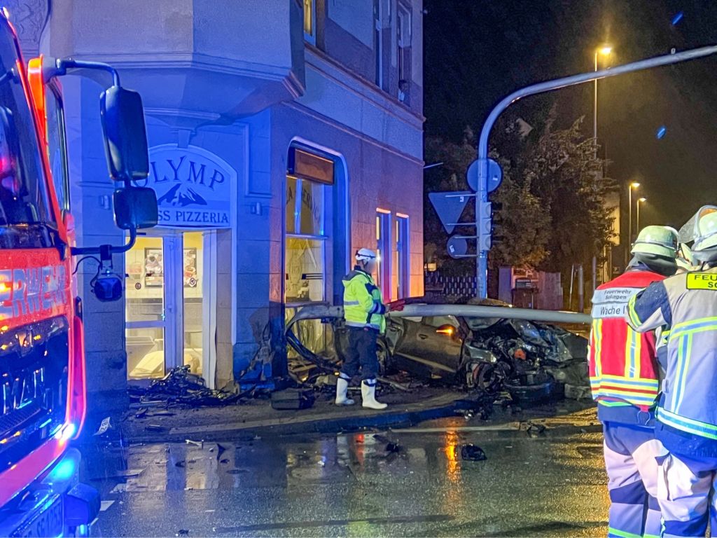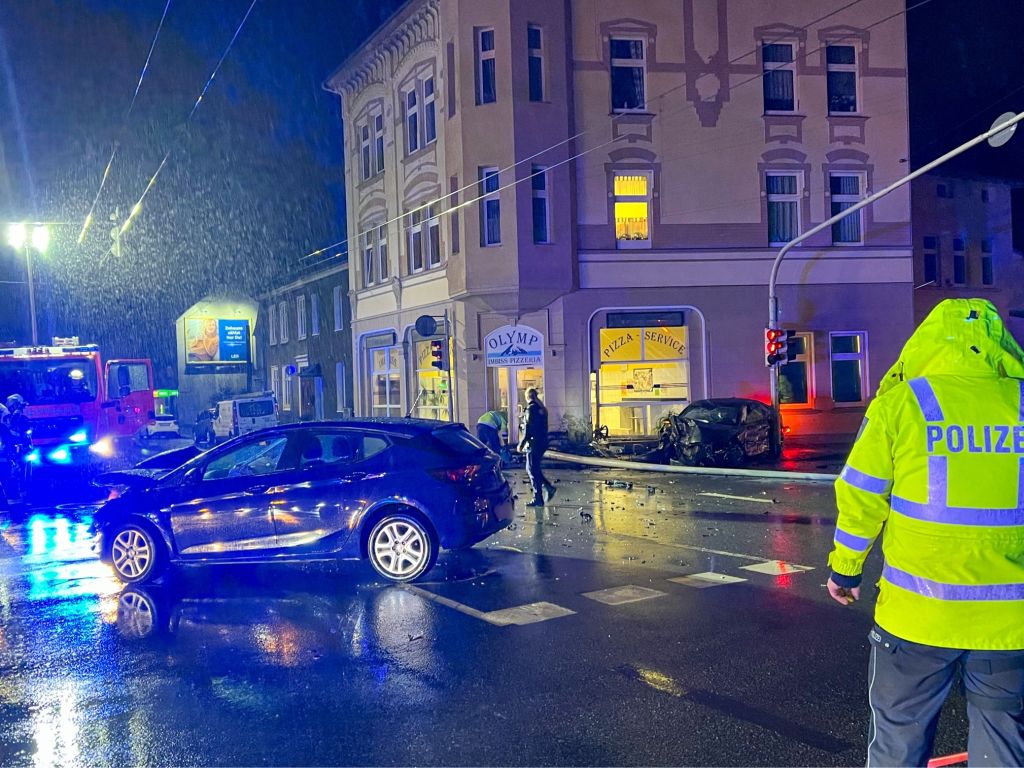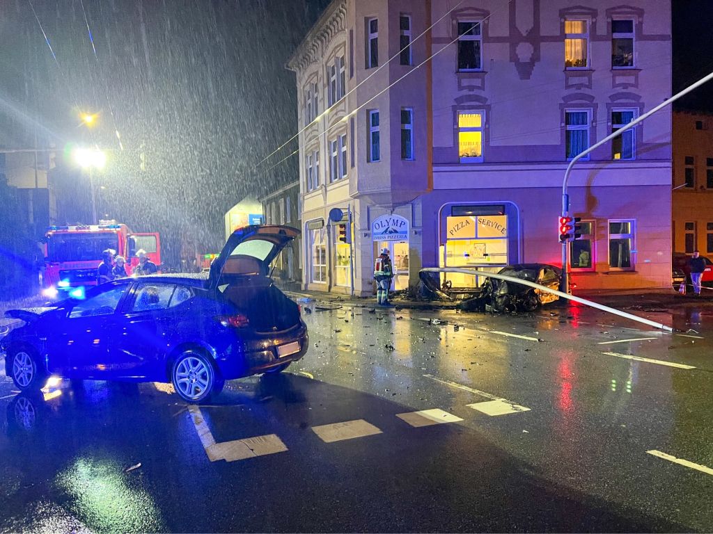 SOLINGEN (ots) – Am Dienstagabend kam es gegen 23.20 Uhr in Merscheid zu einem schweren Verkehrsunfall, bei dem zwei Personen leicht verletzt wurden und hoher Sachschaden entstanden ist. Ein 42-Jähriger fuhr mit seinem Opel auf der Straße Schwarze Pfähle in Richtung Bebelallee. Als ihn ein 18-jähriger Fahrer eines hochmotorisierten Audi S7 Sportwagen kreuzte, der auf der Merscheider Straße in Richtung Ohligs mit „deutlich überhöhter Geschwindigkeit“ fuhr, kam es zur Kollision.
