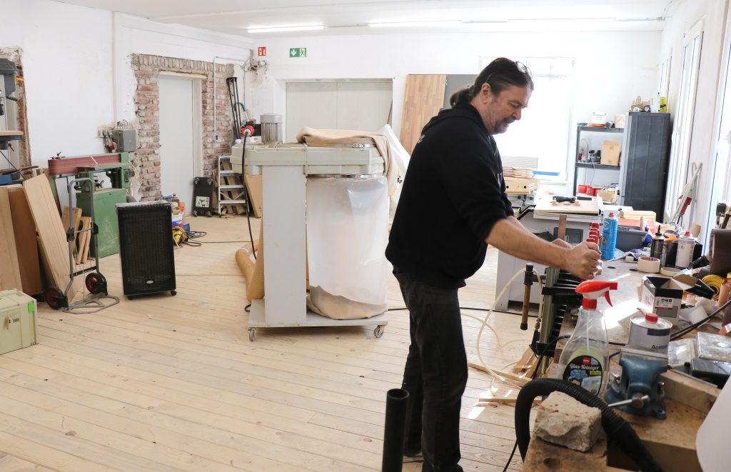 Knut Reiter machte nach mehreren anderen beruflichen Verwendungen zunächst in Düsseldorf eine Umschulung zum Schreiner. Die Arbeit mit dem Werkstoff Holz begleitet ihn bereits seit mehr als einem Vierteljahrhundert. So richtig glücklich wurde der passionierte Musiker in den klassischen Tischlerbetrieben aber nicht, weshalb er sich erneut umorientierte.