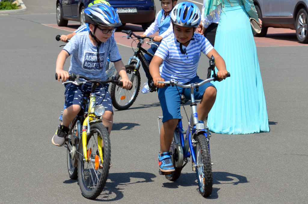 „Wir wollen Eltern und Kindern Sicherheit vermitteln“, so Daniela Berghaus. Außerdem möchten wir aufzeigen, wie viele Möglichkeiten es gibt, um für die Kinder zahlreiche Übungen selbst zu entwickeln. Mit den geringsten Mitteln kann man mühelos einen Parcours aufbauen. Spuren lassen sich leicht mit Straßenmalkreide aufzeichnen oder mit Seilen legen. Hier sollen die Kinder möglichst langsam durchfahren, um das Gleichgewicht zu trainieren und ein Gefühl für das Fahrrad zu bekommen.“ Einen kleinen Parcours aufbauen oder Spuren zeichnen übernehmen sie auch gerne selbst.