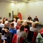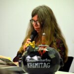 Saga Grünwald begrüßte die rund 50 Besucher sehr herzlich und gab einen kurzen Ablauf des Abends bekannt. Die Autorin und freie Journalistin lebt seit 2007 in Solingen und ist nicht nur Mitglied im Syndikat, sondern auch bei den Mörderischen Schwestern und im Bergischen KrimiKartell. Dann las sie aus ihrem Buch „Verschollen im Bergischen Land“, dem zweiten Band ihrer Bergischen Krimireihe.