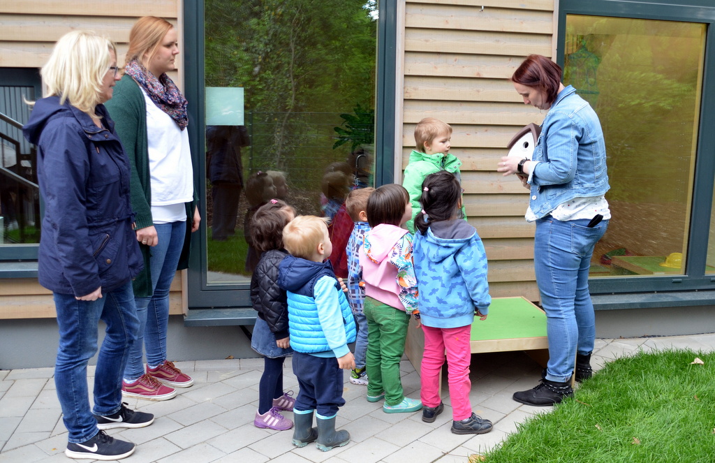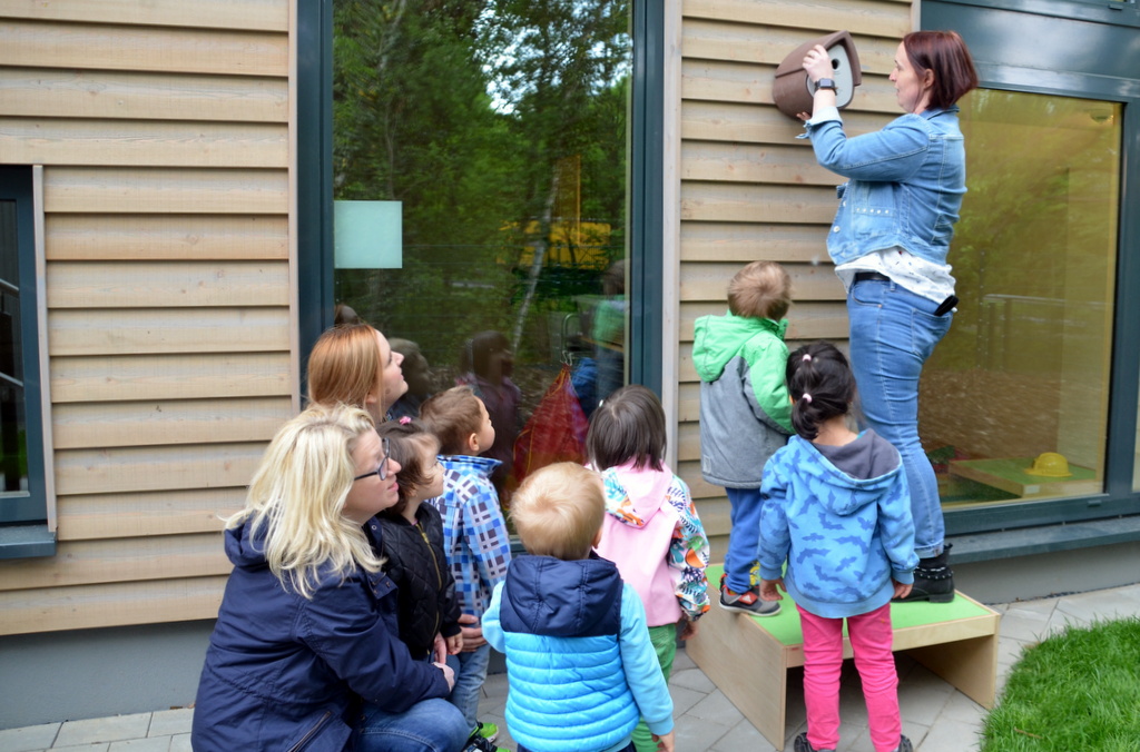 Nicole Dockendorf vom städtischen Immobilienmanagement hatte den Bau der Kita begleitet. „Wir hatten die Chance, einen natürlichen Holzkindergarten zu bauen. So einen wunderbaren Naturbaustoff sollte man aber nicht nur an der Fassade erkennen. Deshalb haben wir versucht, das Haus innen wie außen so naturnah wie möglich zu gestalten. Dazu passen Umweltschutz und Nachhaltigkeit hervorragend. So bietet sich hier eine einzigartige Möglichkeit, für die Kinder einen Ort zu schaffen, der wirklich lebt und dadurch die Natur ein Stück weit zurückbringt.“