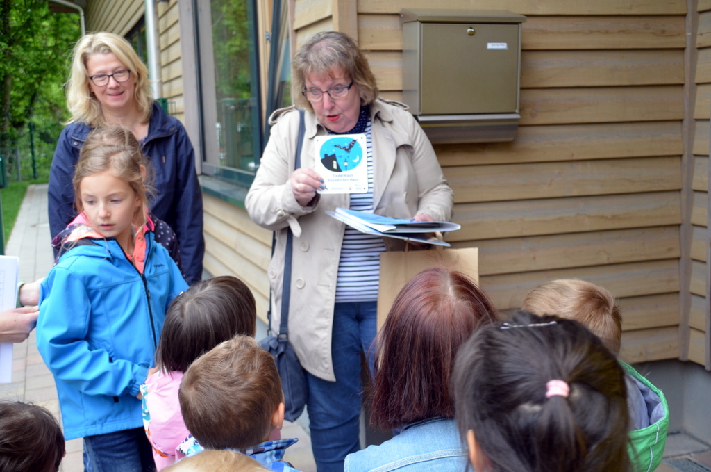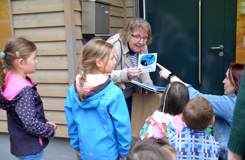 „Wir freuen uns sehr, dass wir heute dieses Haus als fledermausfreundlich auszeichnen dürfen“, strahlte Edeltraud Krüger vom NABU, Stadtverband Solingen. Neben den Nistmöglichkeiten für Spatzen und Meisen hängt am Haus auch ein Fledertierkasten. „Die Kinder werden hier schon früh an die Natur herangeführt, eine bedeutende Aufgabe der Erzieherinnen. Das gibt viele spannende Erlebnisse. Für uns vom NABU ist es ein wichtiger Schritt im Hinblick auf Nachhaltigkeit.“ Der Naturschutzbund als mitgliederstärkster deutscher Umwelt- und Naturschutzverband engagiert sich schon lange in der Umsetzung nachhaltiger Entwicklungsziele in Deutschland.