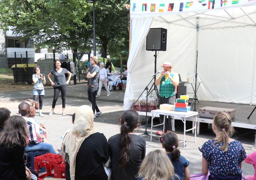 Diese wurden zunächst von Clown Ötti vorzüglich unterhalten. Später gab es dann sogar Live-Musik verschiedener Gruppen. Auf dem Fußweg vom Wendehammer der Roland- zur Hasselstraße fand zudem erstmals ein Trödelmarkt statt. „Wir haben 20 Stände und die Teilnahme ist kostenlos“, machte Martina Lehnen deutlich. Und so war das Sommerfest nicht nur eine Gelegenheit für die Nachbarn, sich kennenzulernen und ins Gespräch zu kommen. Auch das Quartiersmanagement und der Verein Wir in der Hasseldelle stellten sich und ihre Arbeit vor.
