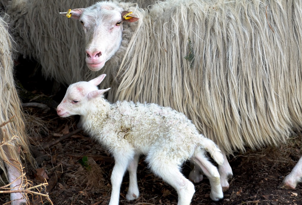 Das schwarze Lamm ist ein Sonntagskind. Es wurde heute Morgen geboren. Munter stakst es auf langen dünnen Beinen hinter der Mutter her. (Foto: © Martina Hörle)