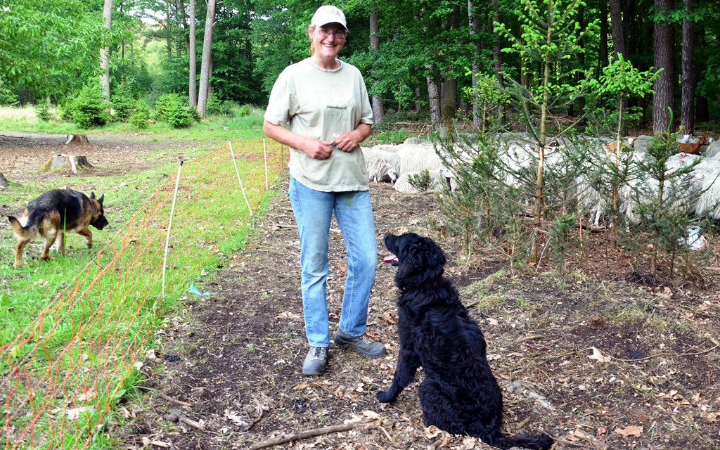 2002 war sie zum ersten Mal als Wanderschäferin in der Heide. „Jedes Jahr kann ich mitverfolgen, wie sich die Heidelandschaft ändert. Das Schafbeweidungsprojekt ist für die Umgebung wirklich wichtig, eine Form der Landschaftspflege.“ Wenn sie morgens zum Pferch kommt, schaut sie zunächst nach, ob es Neugeborene oder vielleicht kranke Tiere gibt. Am Sonntagmorgen findet sie ein rabenschwarzes kleines Lamm vor – ein Sonntagskind. Munter stakst es auf langen dünnen Beinen hinter der Mutter her.