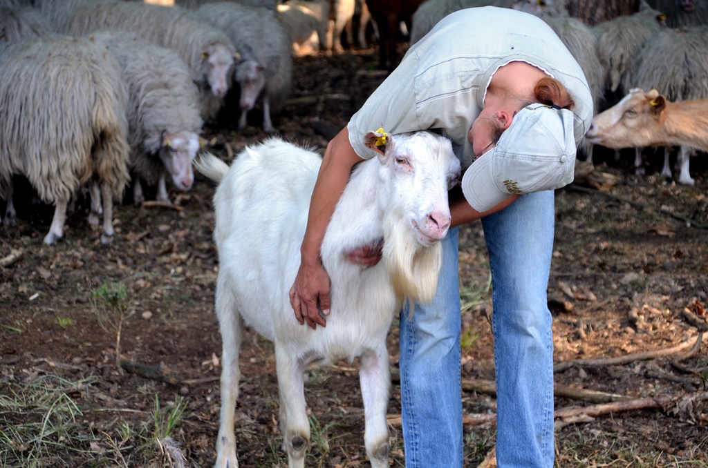„Manchmal werde ich gefragt, ob es nicht sehr einsam ist. Ganz ohne Menschen.“ Sie lacht. „Ich bin gar nicht einsam. Die Tiere sind sehr unterhaltsam. Außerdem sind sie immer ehrlich.“ Sie liebt die Tiere, und die Tiere lieben sie. Juri, der dreijährige Milchziegenbock, ist ein ausgesprochener Schmuser. Den ganzen Tag möchte er sich den Kopf kraulen lassen. Dabei drückt er sich fest gegen das Bein der jungen Frau. Freiwillig geht er nicht weg. Auch der vierjährige Fleischziegenbock Bruno und der fünfjährige Bent, bunte deutsche Edelziege, hören aufs Wort, wenn ihre Schäferin sie ruft.